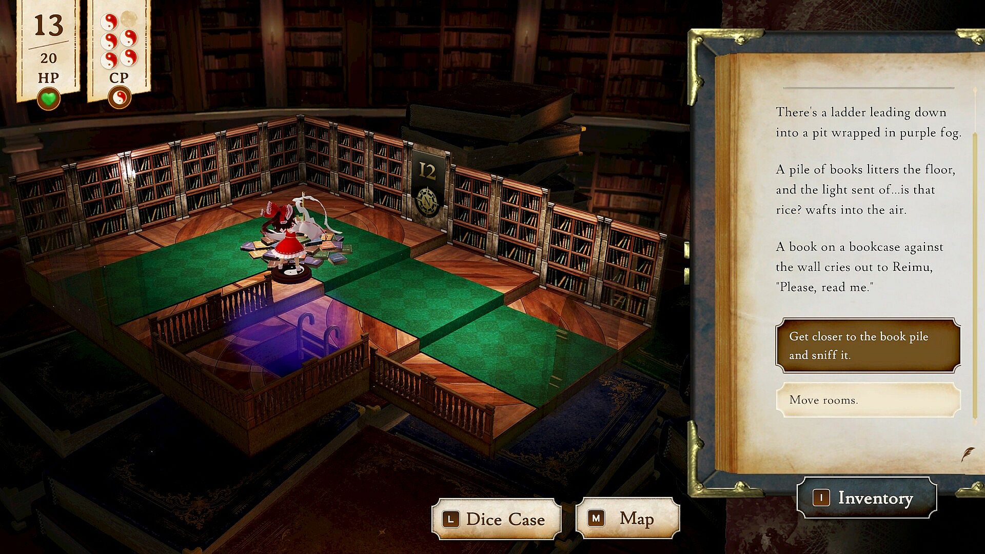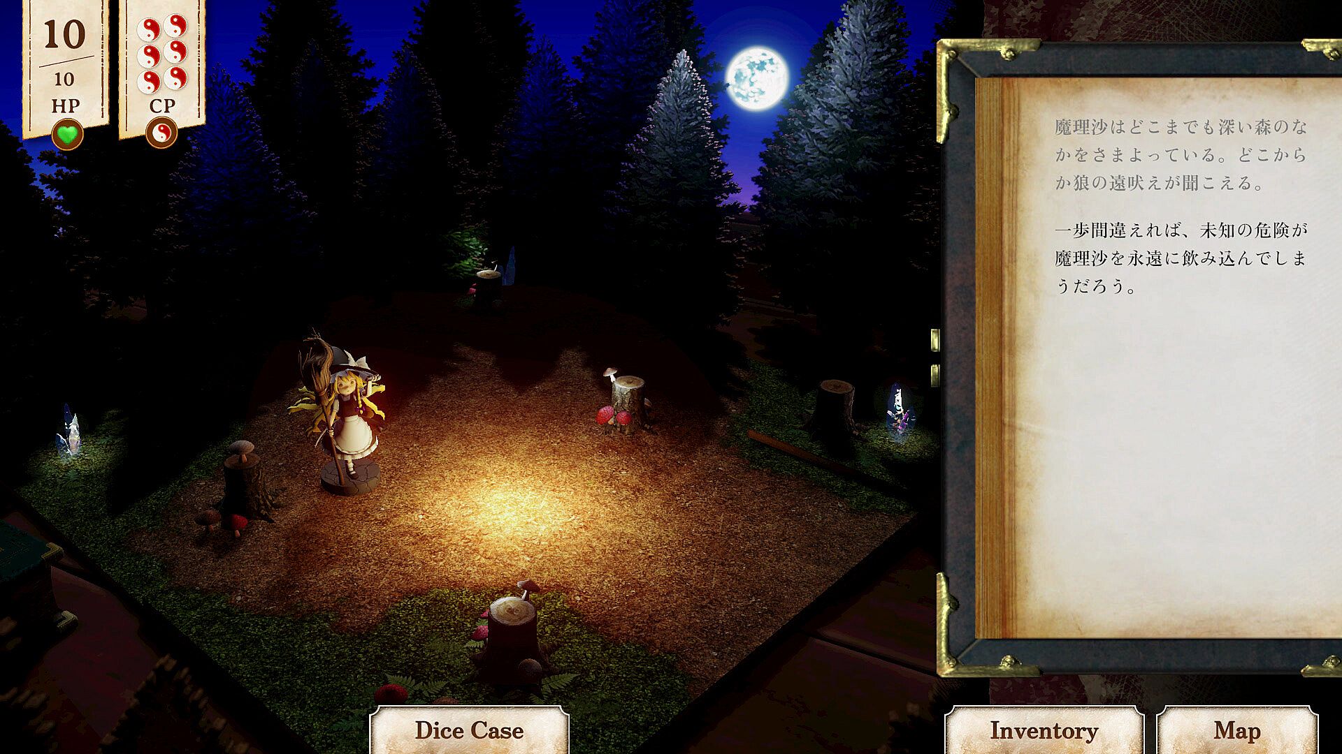 Marisa of Liartop Mountain is an adventure RPG inspired by tabletop gamebooks, where dice rolls and fork-in-the-road choices determine the outcome of a branching story with multiple endings. As Reimu, step into a literary wonderland while in search of Marisa’s whereabouts. Four Touhou heroines will guide, help, and support Reimu on her journey, but which one should Reimu listen to?