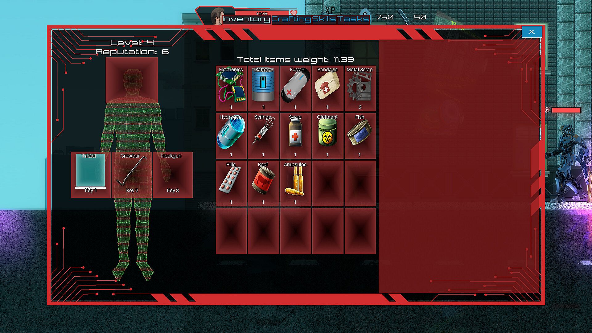 - crafting medkits, grenades, and ammunition
