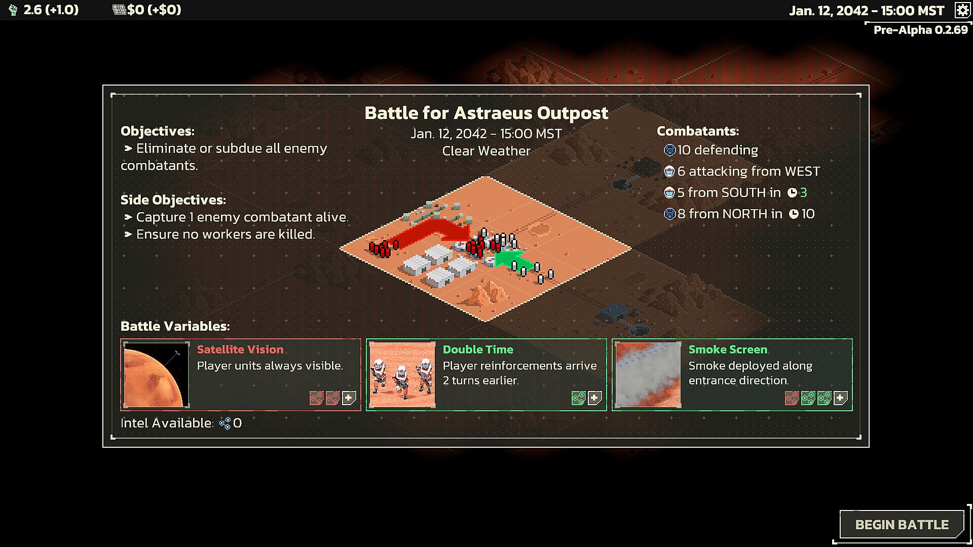 Mars Tactics combines turn-based tactical gameplay with large-scale strategic operations across a detailed map of Mars. Choose between two factions; the scrappy resource-starved Labor revolutionaries, or the expansive shareholder-controlled Capital army. Lead soldiers that grow and learn dynamically from their experiences, in and out of battle, alongside scientists and engineers that ensure you stay one step ahead of the enemy at all times.