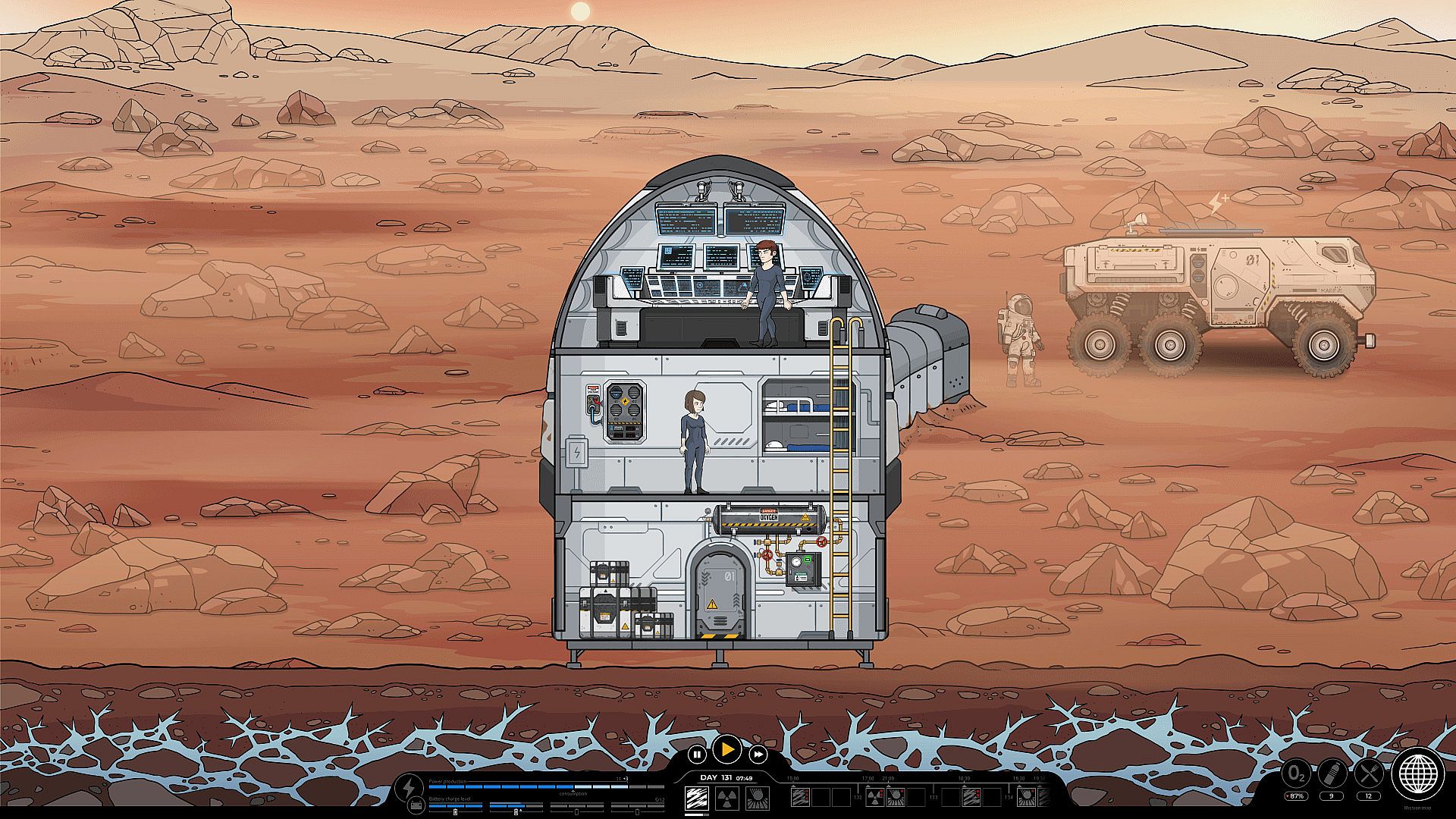 Marscape is narrative 2D action adventure set in a catastrophic space scenario on Mars. The player must skillfully use the skills of his charges & the environmental conditions to survive until rescue.