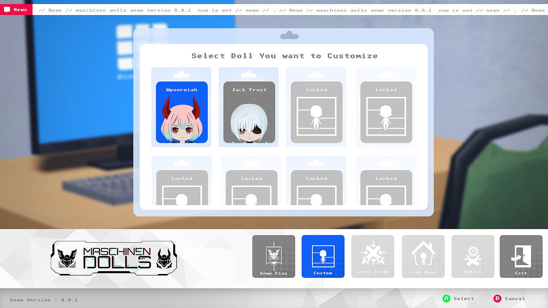 In Maschinen Dolls, Player is playing as Dolls, who is actually popular dolls that injected by soul core of machine race, The Mythroid. Mythroid planet is destroyed by their war with Monstroid. They arrives at Earth thousand years ago and continue their war in our planet. Mythroid won the battle but their form is reduced to Soul core. While monstroid escape to space and swore to revenge later on. Mythroid names are remembered by human by their mythical creature names.