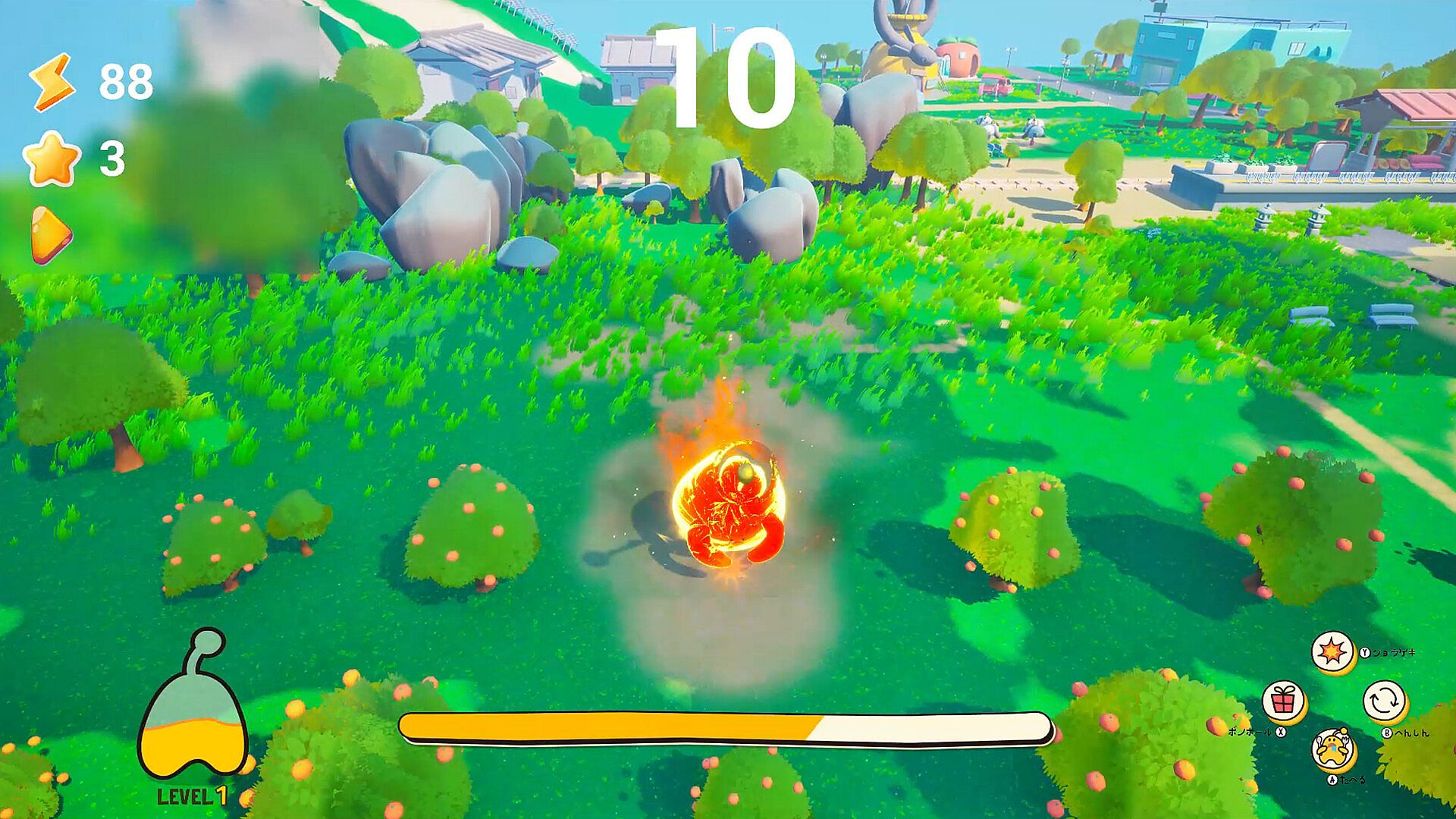 Team up with Guguri, monsters born from human greed, to save a planet suffering from an energy crisis! Open wide and chomp down on towns and houses to grow massive, and generate tons of energy! Sometimes you'll super-size, other times you'll transform – just keep on joyfully eating everything in sight!