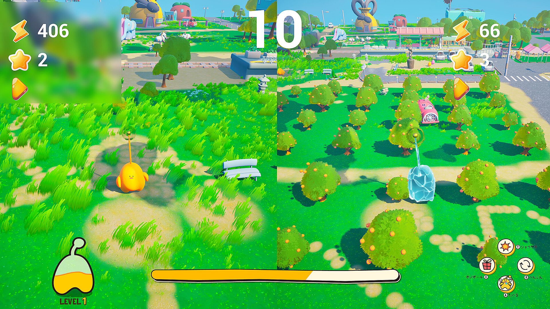 Team up in 2-player mode and eat together! Cooperate or compete! Experience an exhilarating party action game where desires clash!