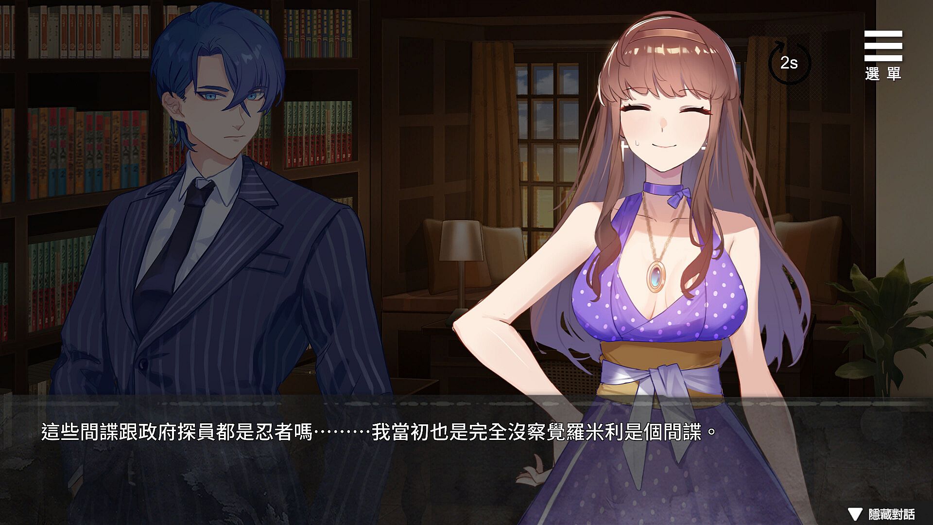 The main storyline contains several choices, different choices will accumulate [Spy Value] and [Slut Value] accordingly.
