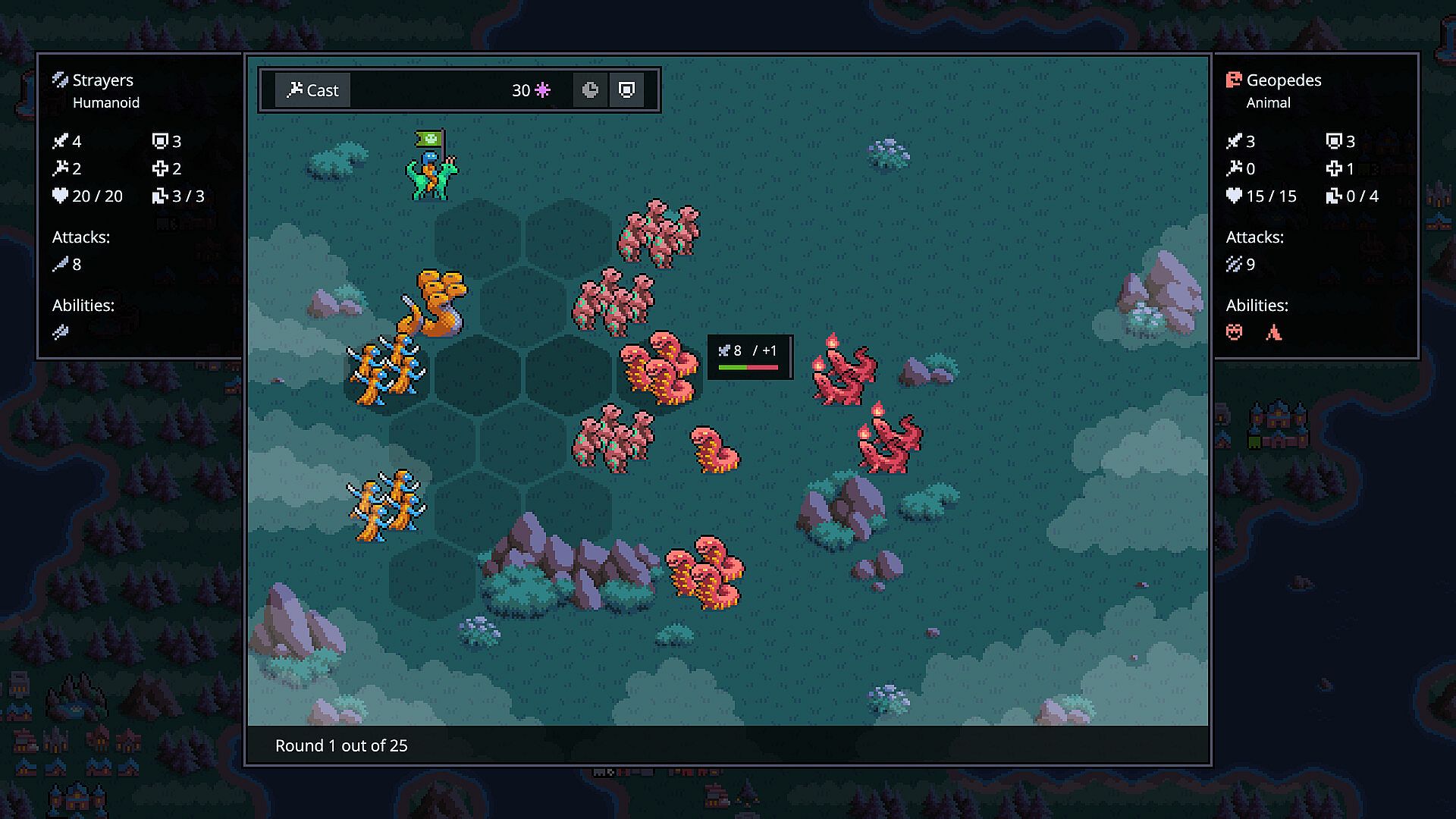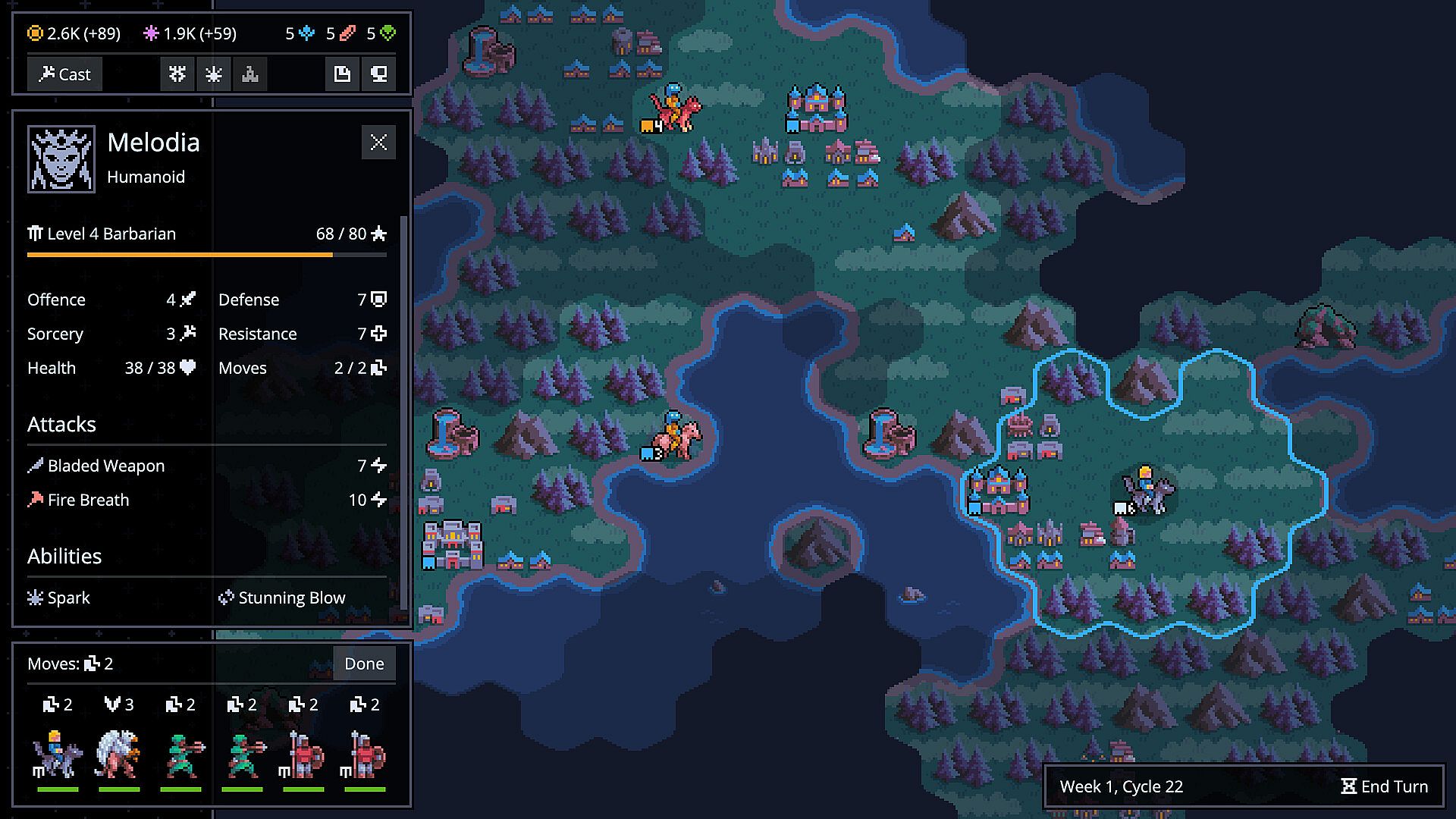 Master of Luna respects its players. You make few decisions, but they matter a lot. There is no micromanagement or tedious tasks. Feedback is instantaneous. At no point you supposed to just hit “End Turn” over and over waiting for some bar to fill up. Creatures have few abilities, yet they are tangible. UI is straightforward and uses the same scheme for world and combat. Important information is explained in tooltips.