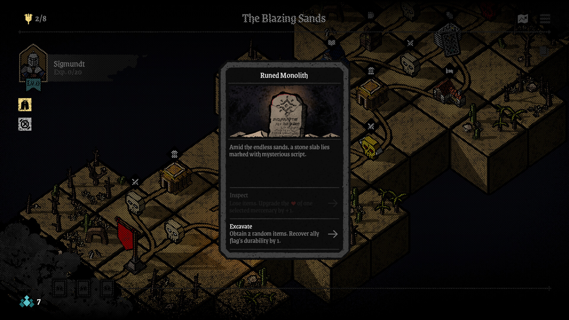 Start your expedition by customizing the commander's ability, starting relic and mercenary party of your choice.