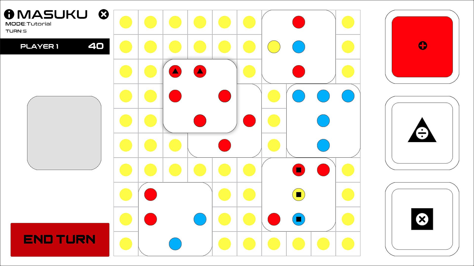 White out: place cards to remove all but 1 square from the board.