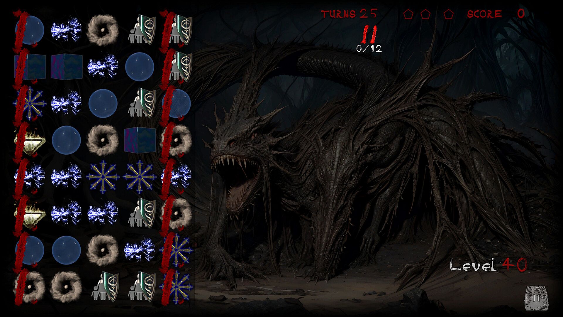 Overcome obstacles like stones, sand, ice, roots, snakes, worms, swamp, blood and wildfire. Open chests, collect coins, buy boosters and bombs.