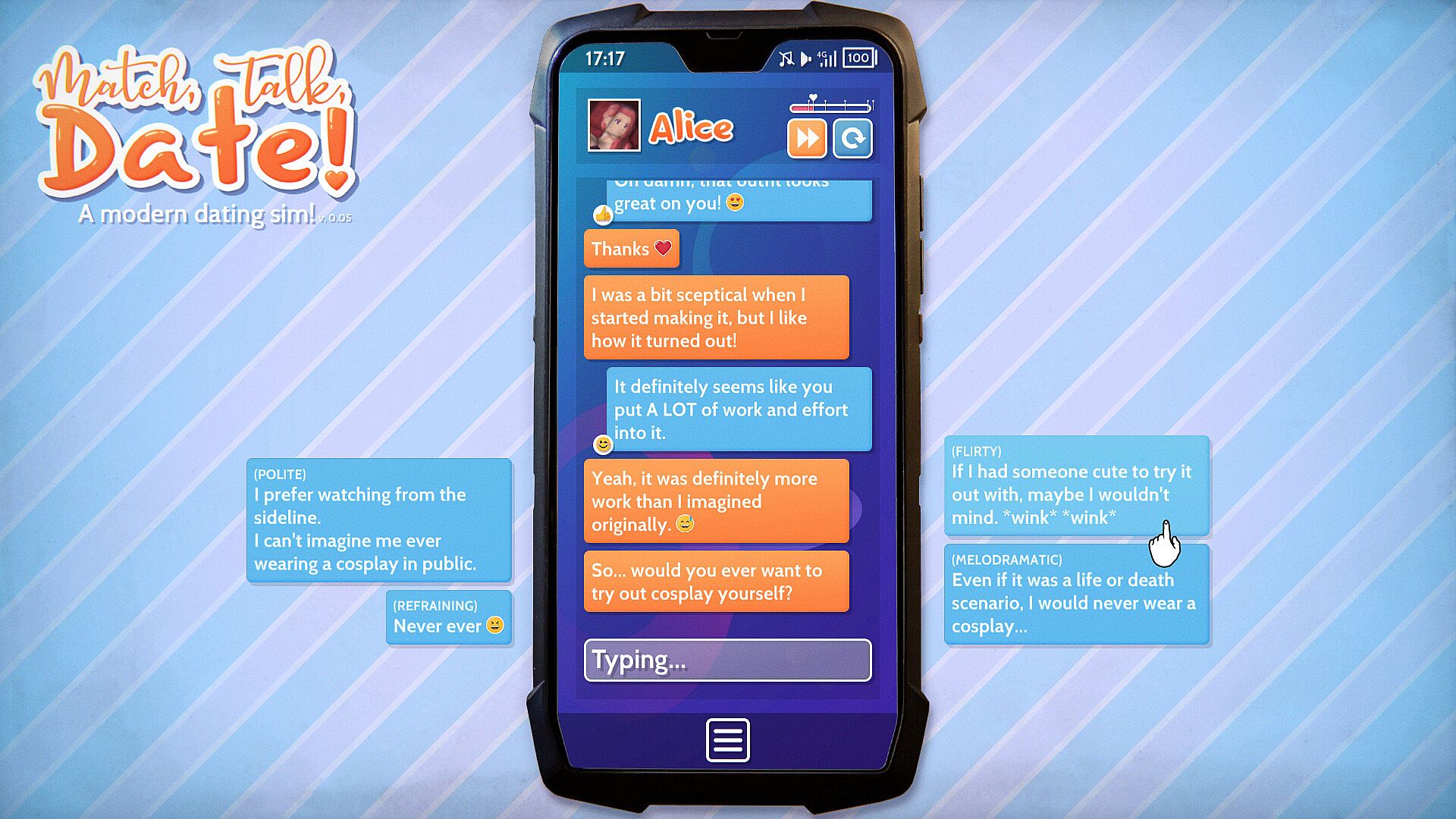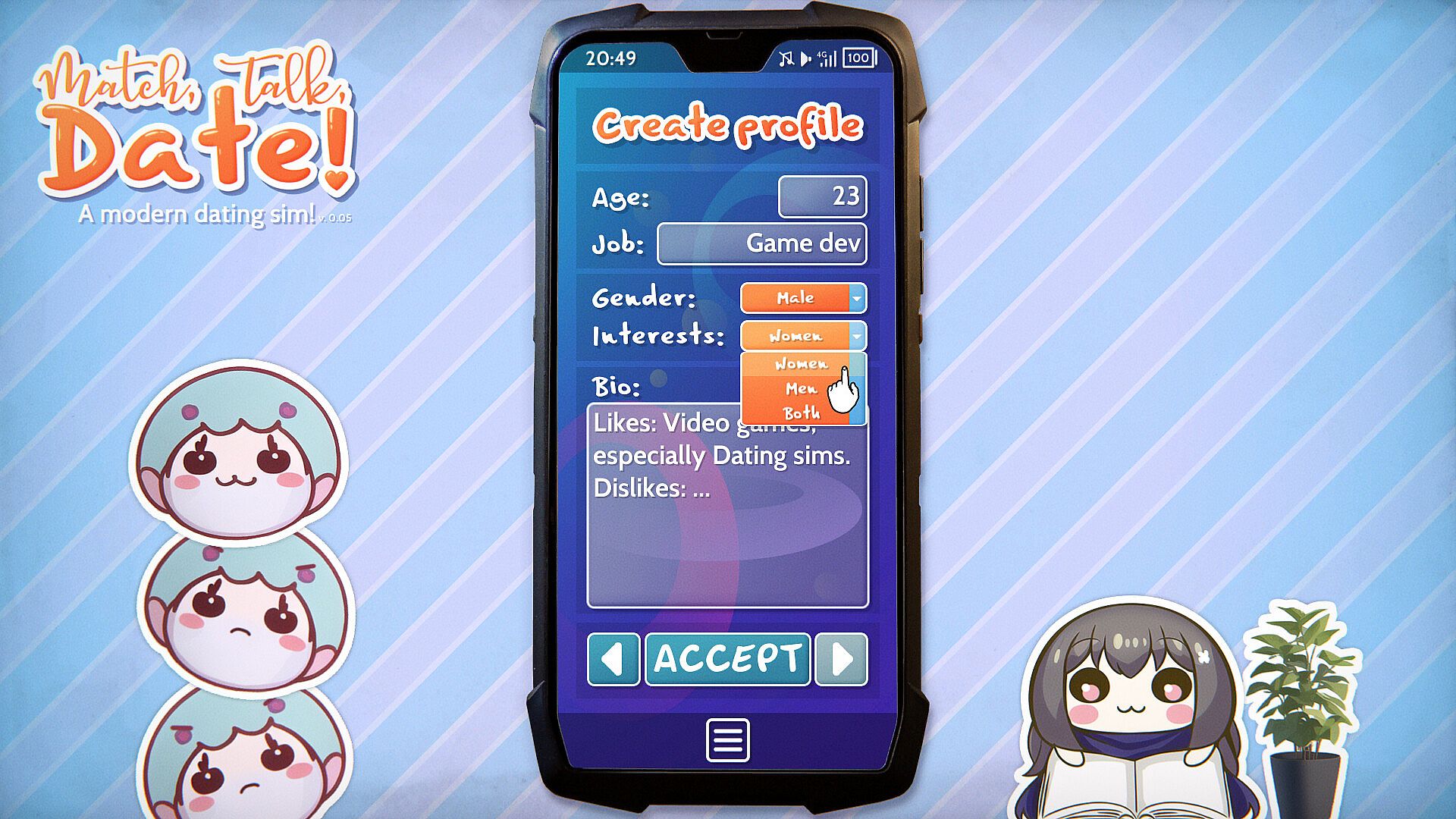Match, Talk, Date! - A modern dating sim! is free to play! Download it on Steam and start playing instantly.
