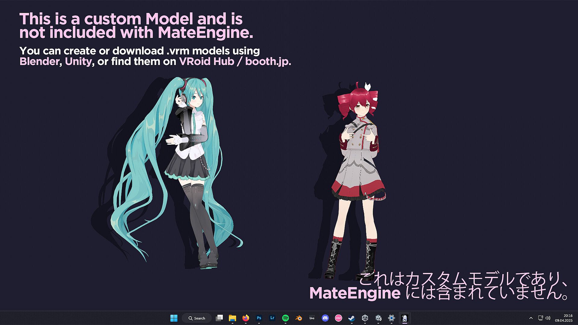 To use custom models, you must download them from websites that offer .vrm files, or commission artists who create or convert models to the VRM format.