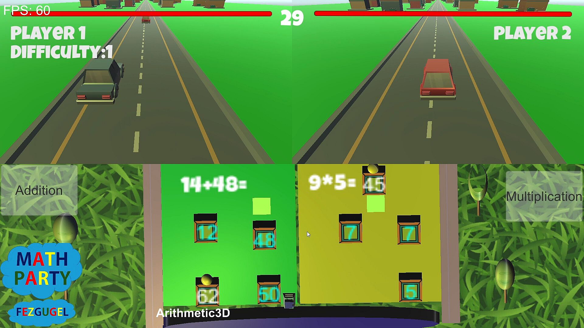 The gameplay is that when the cubes collide, they perform arithmetic operations correctly. Then, the minigame above activates in favor of the one who first performed their arithmetic operation correctly, making a goal in their own favor. The activated minigame is the objective for both players to defeat; it can be either of the two players.