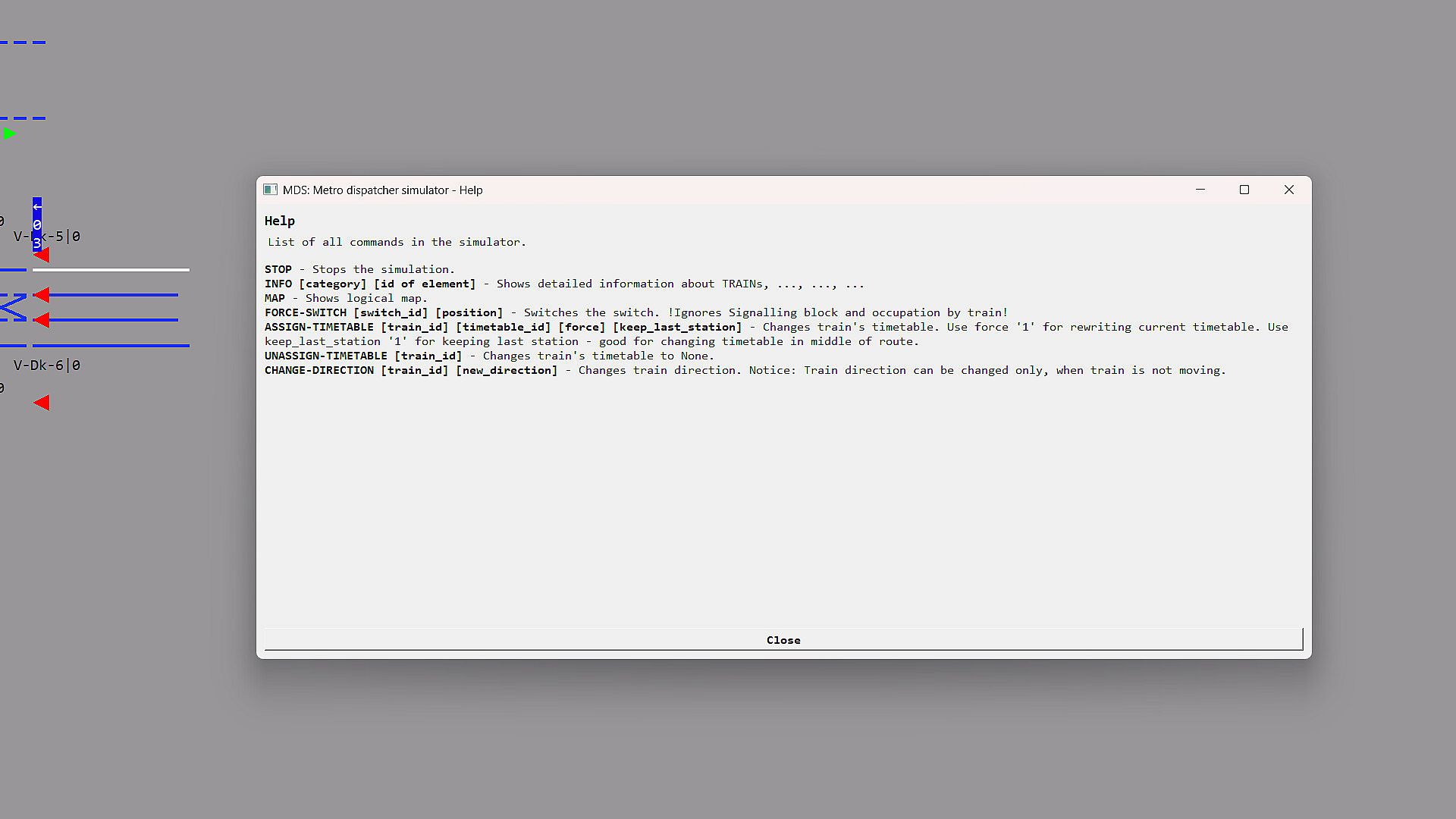 MDS is a detailed simulator of the Prague Metro interlocking system. Take the role of a dispatcher, operate signals, switches, and passenger information system, manage traffic with realistic timetables, or create your own scenarios.
