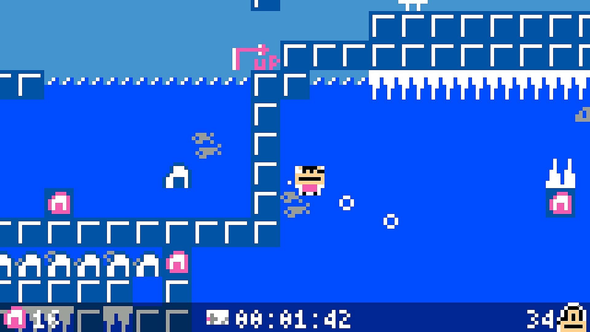 Using the directional pad and two buttons, you can jump, shoot, and eat bitten onigiri. That's all you need. Memorize the body movements for different situations, overcome obstacles, and clear the stages to unravel the mysteries of the island!