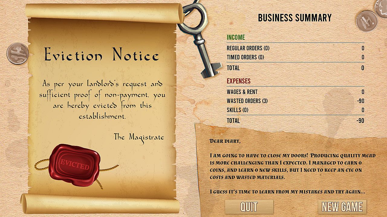 Click colorful icons to craft mead orders for customers in this casual strategy game. Match recipes exactly with fruits and spices, then pack them into the right containers to succeed. Coins earned each round pay your rent or unlock skill improvements for business growth. Gameplay ramps up in challenge with every turn as random icons for ingredients and containers keep things fresh. A skill tree lets you experiment with strategies, while detailed stats show paths to higher profits. Perfect for all ages seeking quick, replayable sessions on PC.