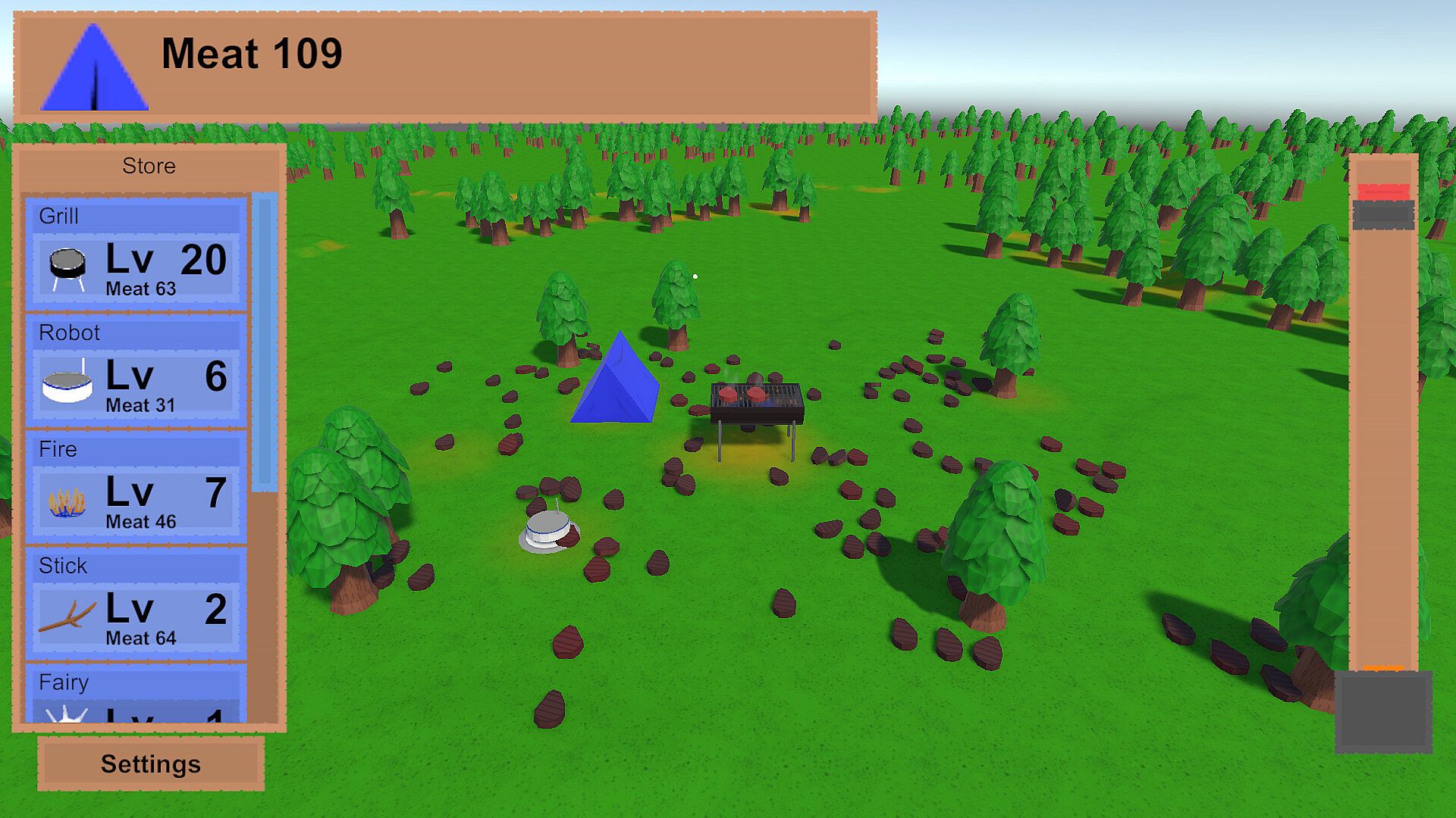 Meat Outdoors is a game about making grilled meat outside in open air. you can upgrade and recruit a variety of help to collect cooked meat.