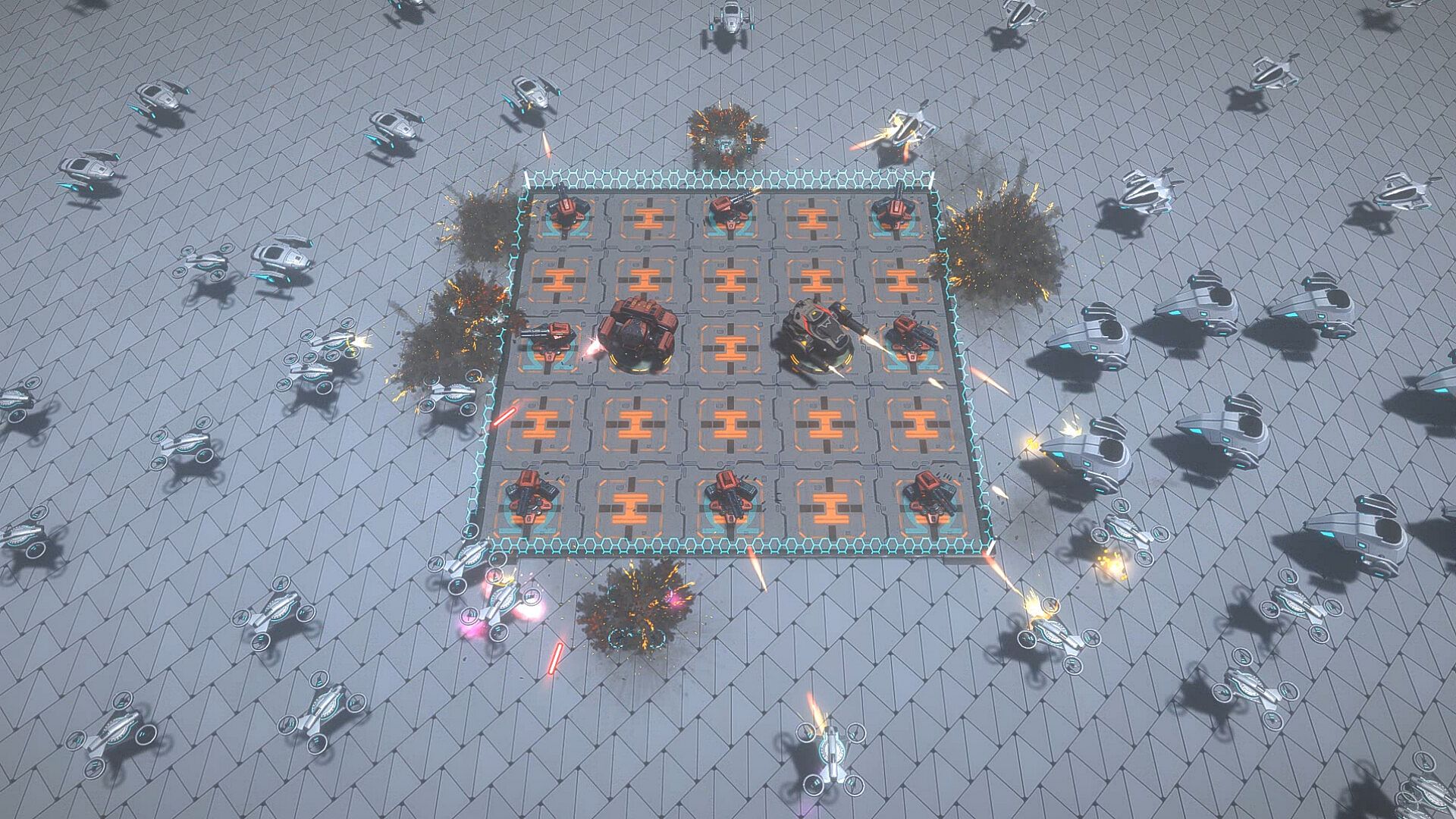You can freely arrange turrets on a 5×5 grid and unlock more turrets through battles.