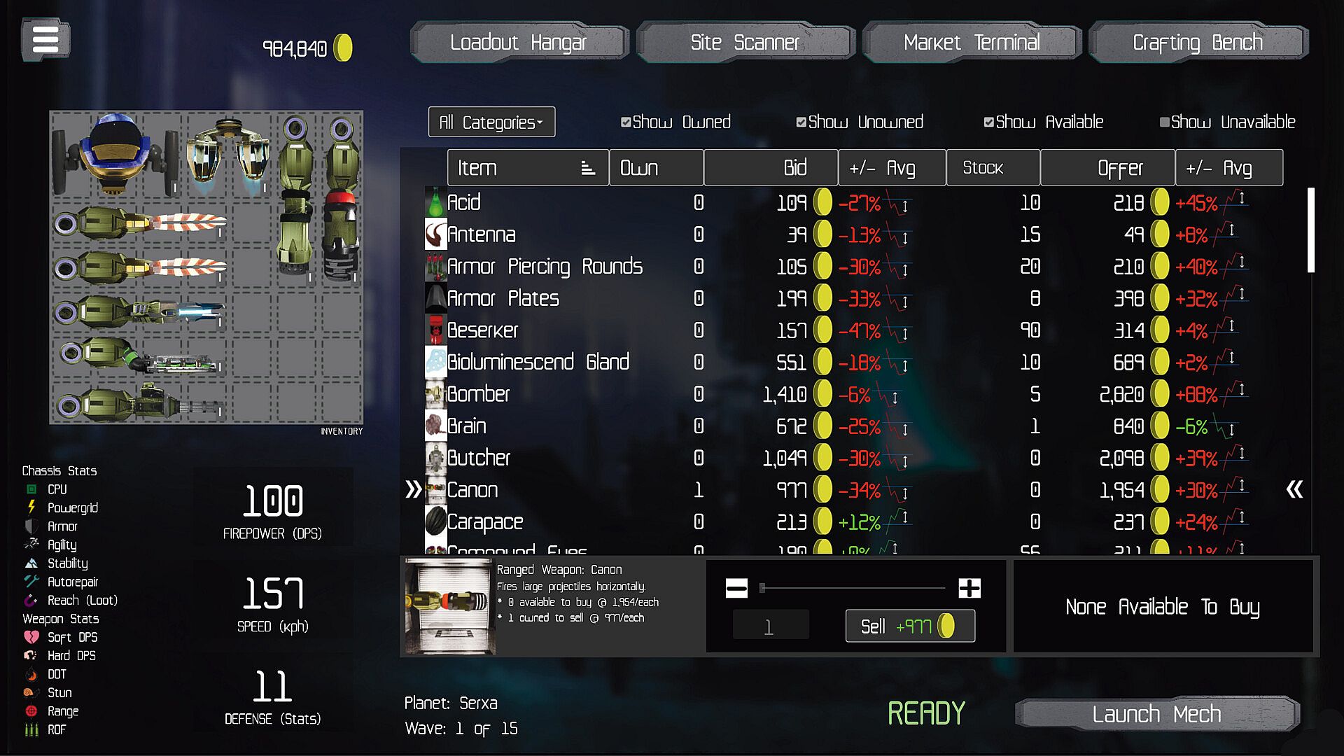 Strategic Looting and Trading: Gather valuable loot from defeated enemies. Trade at the market, and utilize your resources to bolster your mech's defenses.