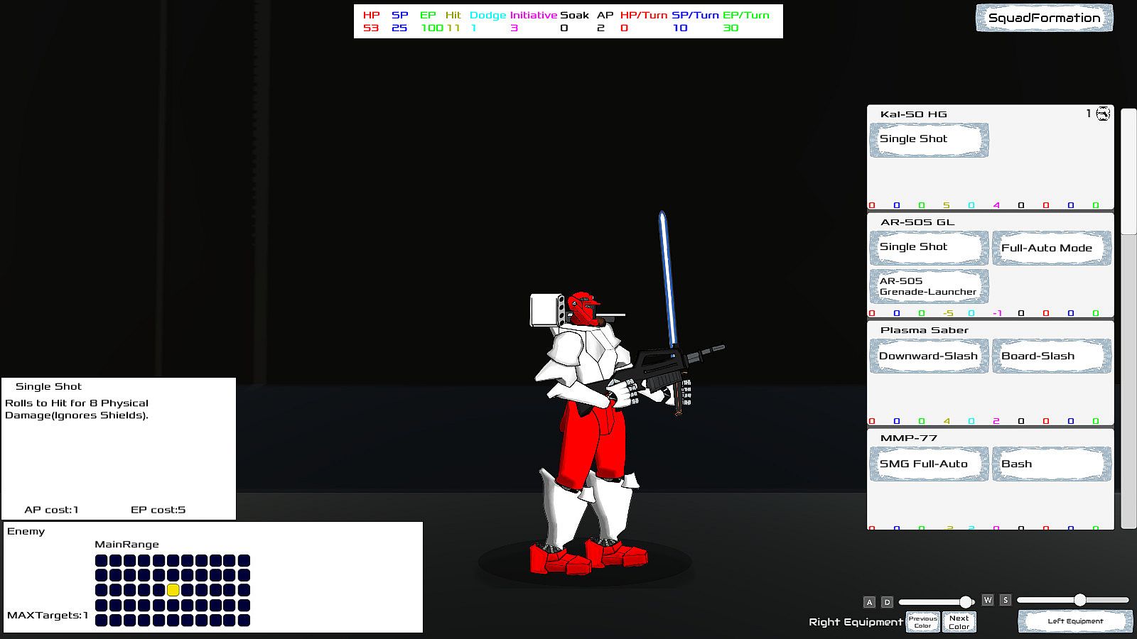 -All actions avaliable to your mechas depend on the choice of parts for every mecha in your squad.-Diferent mecha parts grant different abilities and stats.