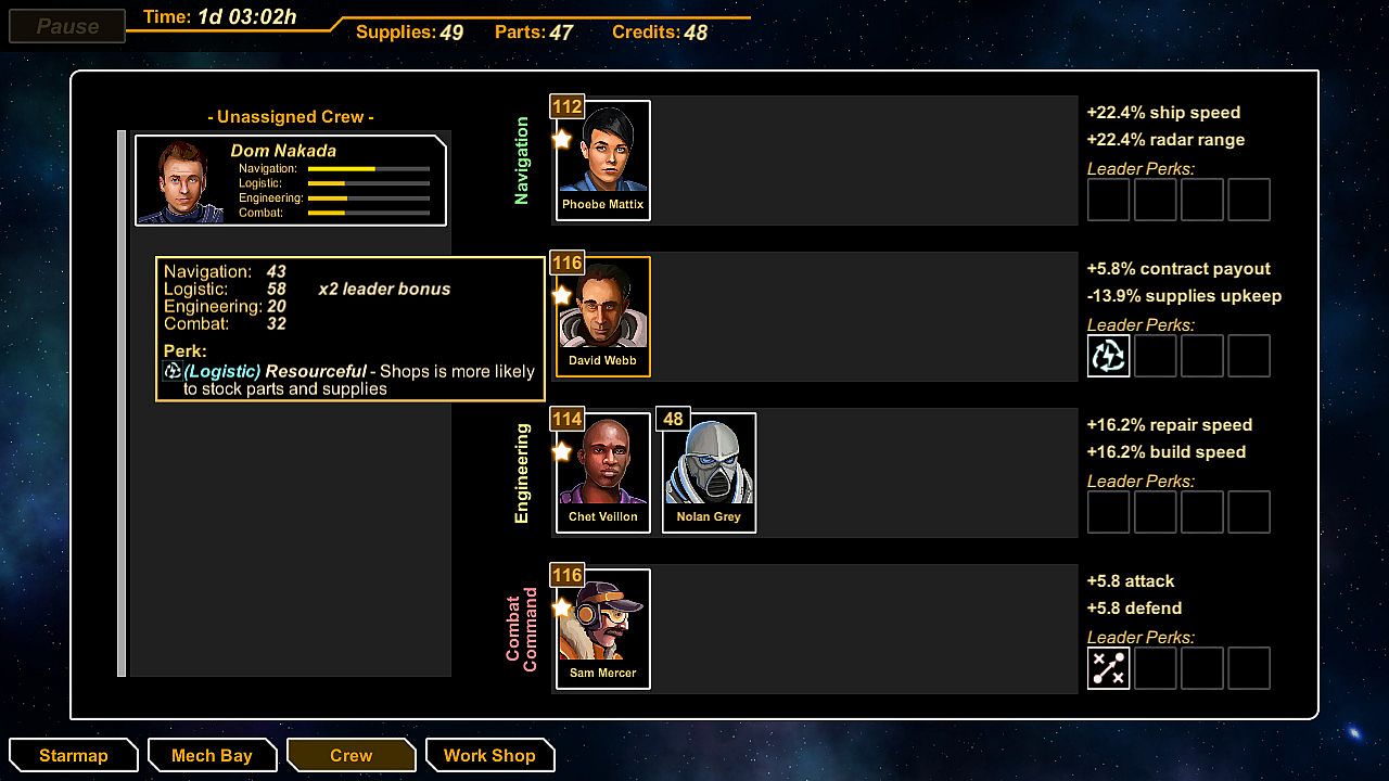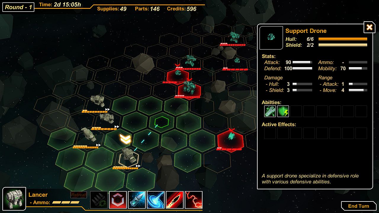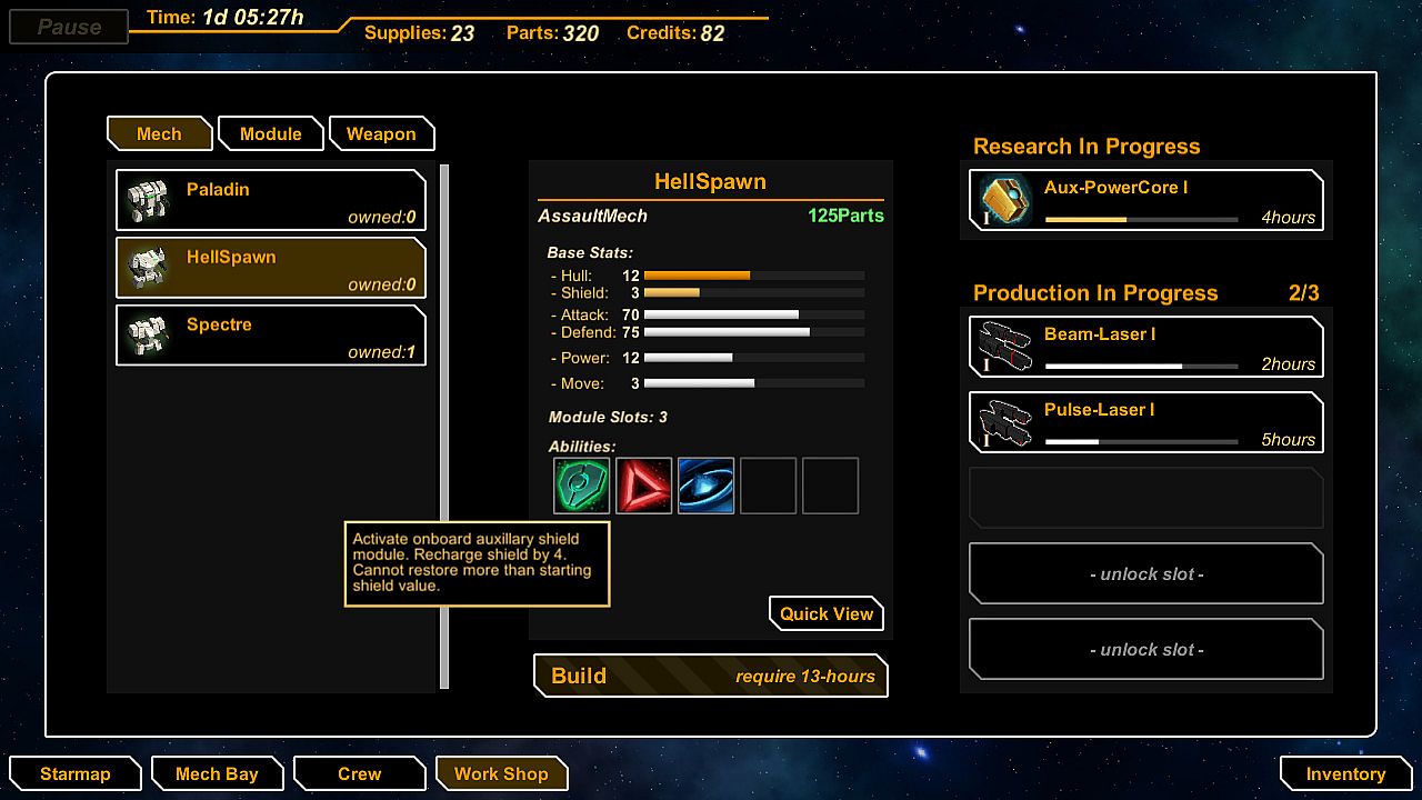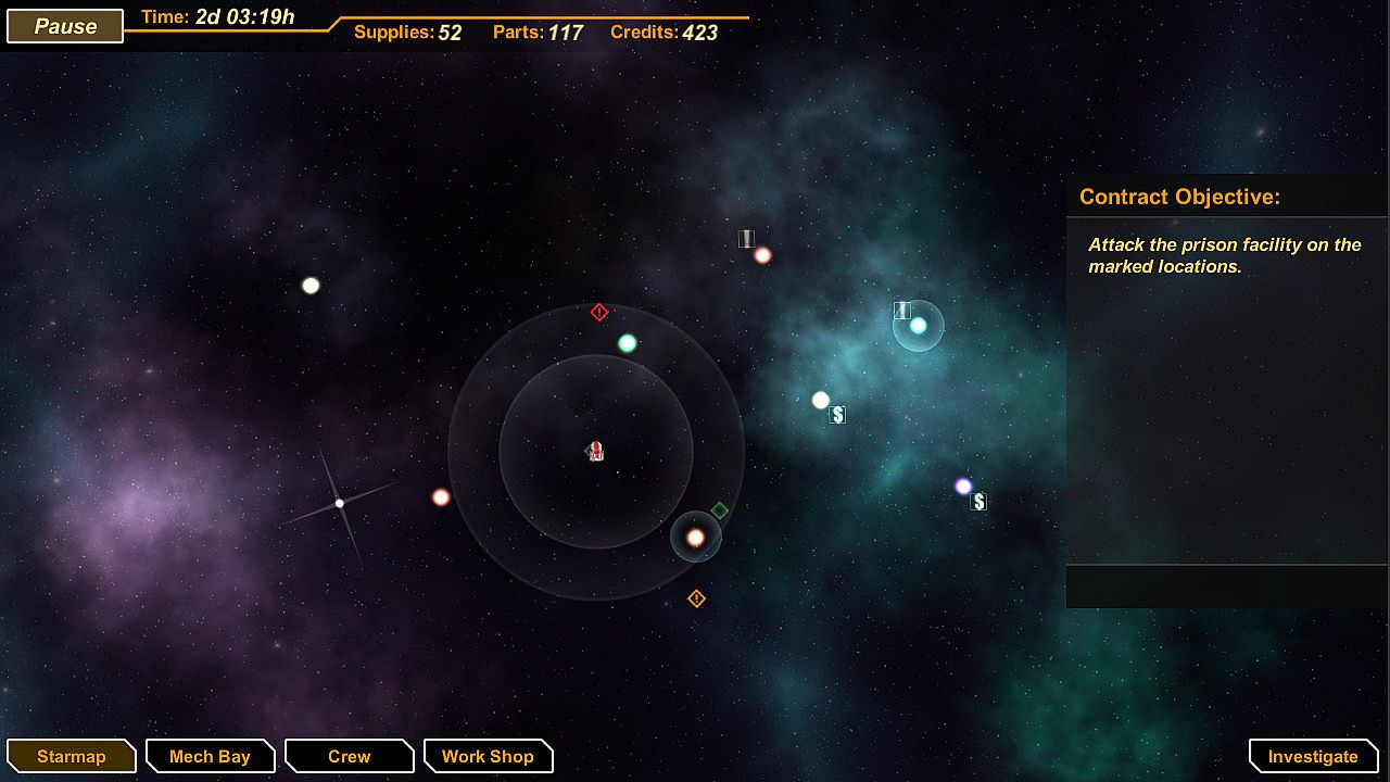 MechCorp. is a turn-based-tactics/strategy game where you take command of a mercenary mech squadron in space. Decide which battles to fight and what contracts to pursue while managing every aspect of the squad including mech lineup, crew management, research and production.
