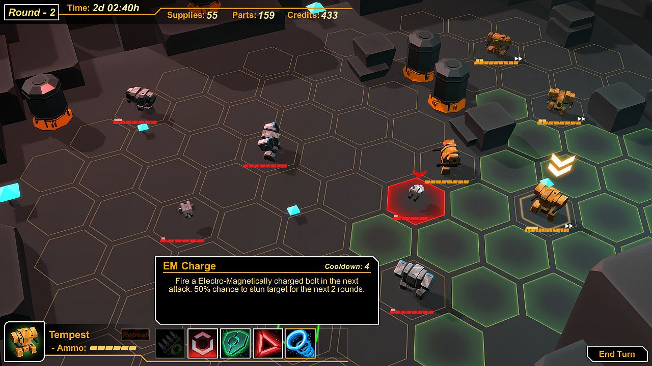 • Customize the mechs with different weapons and items to suite your tactical needs.