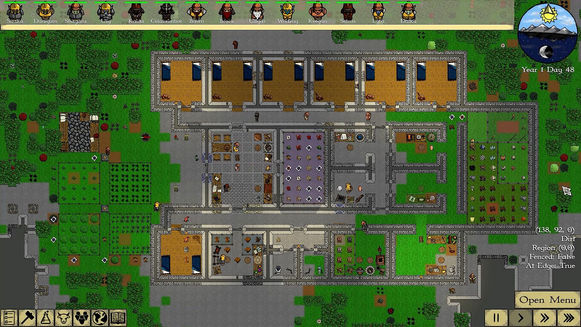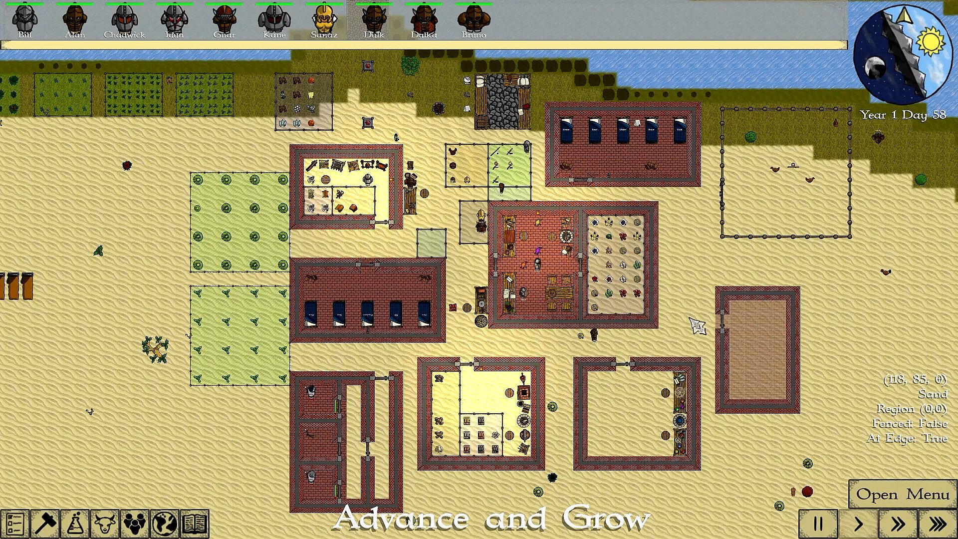 Featuring a research tree, your colonists will be able to research new technologies and advance your civilization.  From gaining access to basic metalcrafting, spellcrafting, and enchanting, to more advanced forms of each, you can advance your ability to fight and defend your colony.  But you can also discover technologies to make your citizens more comfortable, such as heating and cooling options, and better medicines.