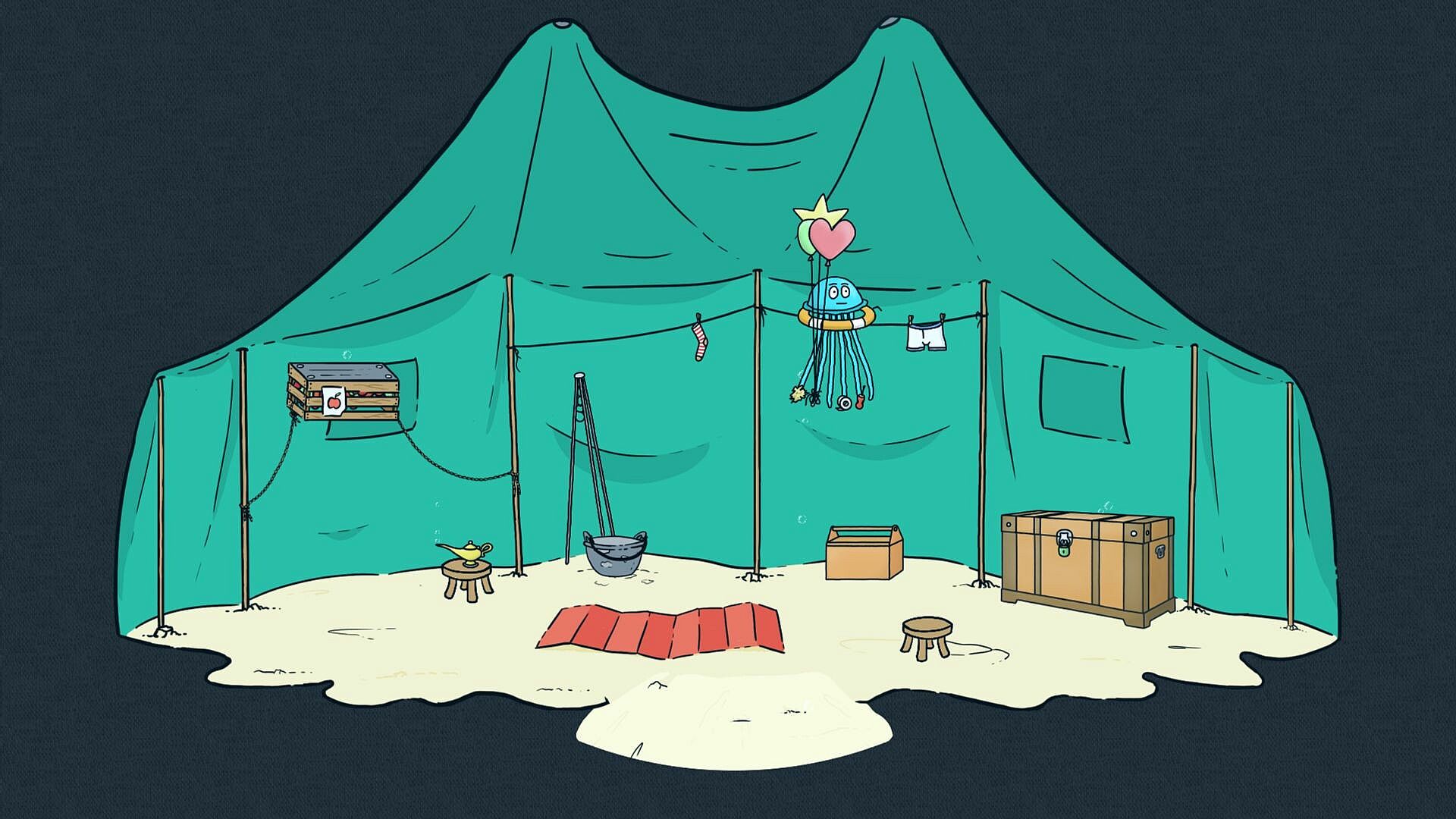 A blue jellyfish embarks on an epic journey to pick up his kid from kindergarten to come home for dinner. The journey, however, proves to be full of surprises and unexpected obstacles. The bus to the city breaks down in the middle of the "desert" (we are still under water mind you) and only you can figure out the way to make it operational again... just to discover that you don't have the money for the subway ticket... Maybe working part time in a restaurant will help? Maybe, but this is just the beginning. What other adventures await you in this underwater world of fun riddles and abstract humor? Nobody really knows... well, maybe except the Old Ones...