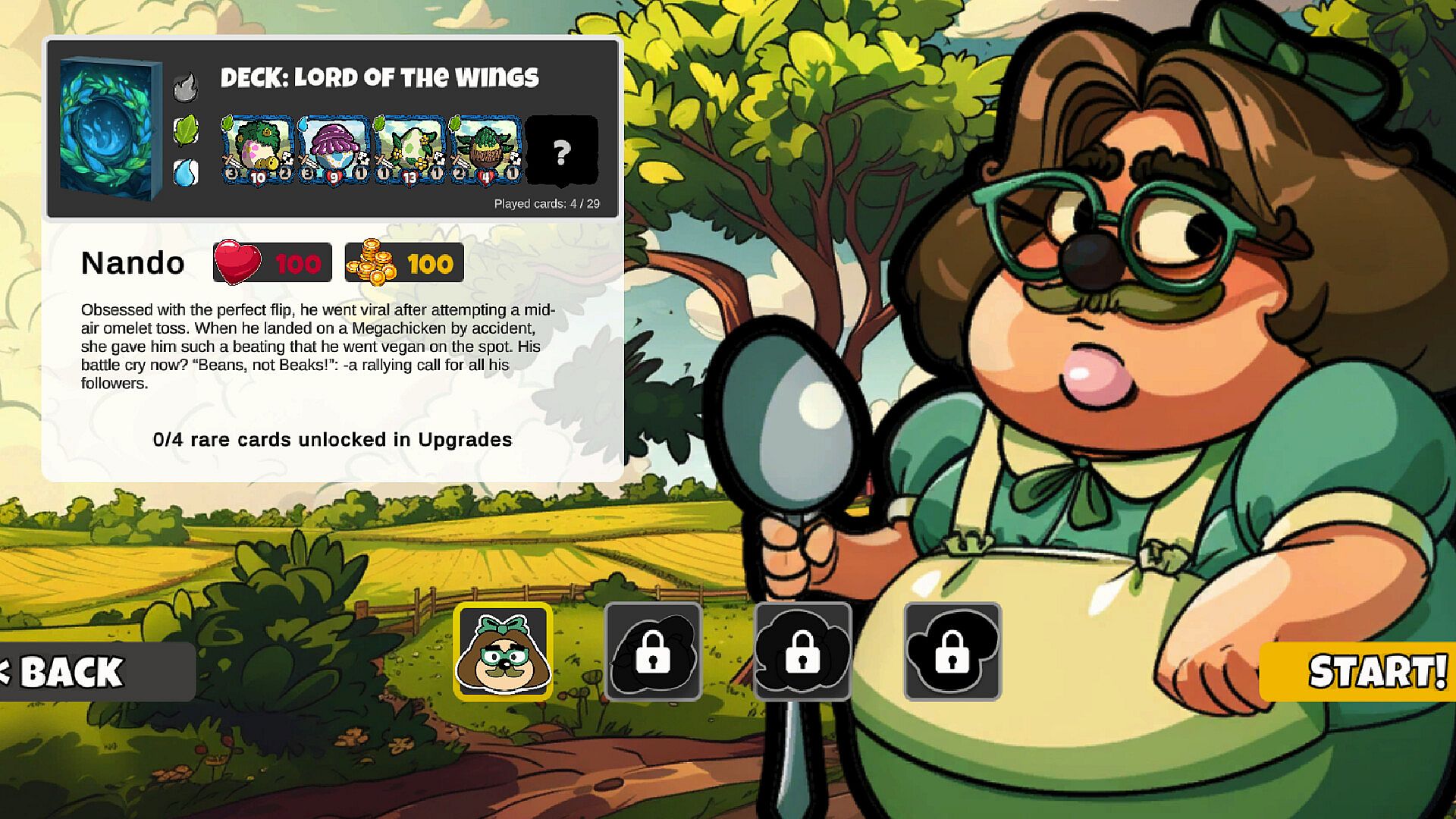 Start with one brave character, and unlock up to four distinct playable Henfluencers, each bringing their own unique deck of chicken cards and play style. Master all the decks: Lord of the Wings, Eggpocalypse Now, Cluck Fiction, and Henfinity War.