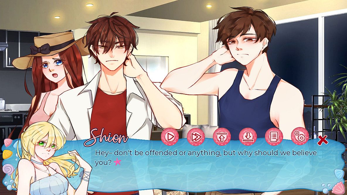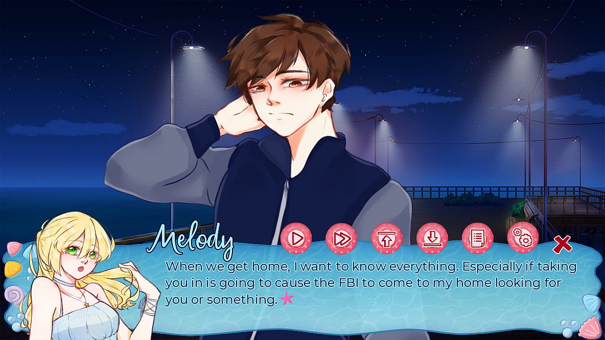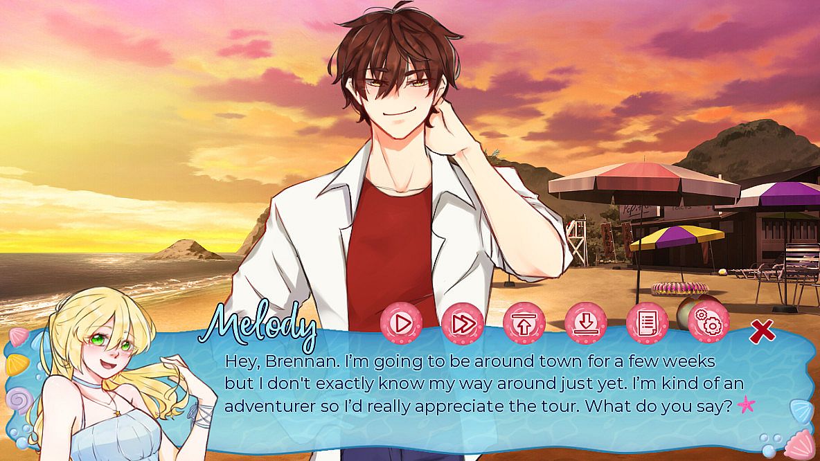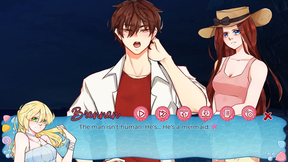 Memories on the Shoreline is an otome dating sim featuring Melody, a med student, on her vacation of a lifetime where she meets two bachelors while at the beach. Brennan, the cheeky lady's man who's a bit overprotective, and Crylis, the fugitive merman who's hides behind a lot of snark. How exactly is she going to get herself out of this trouble—?!