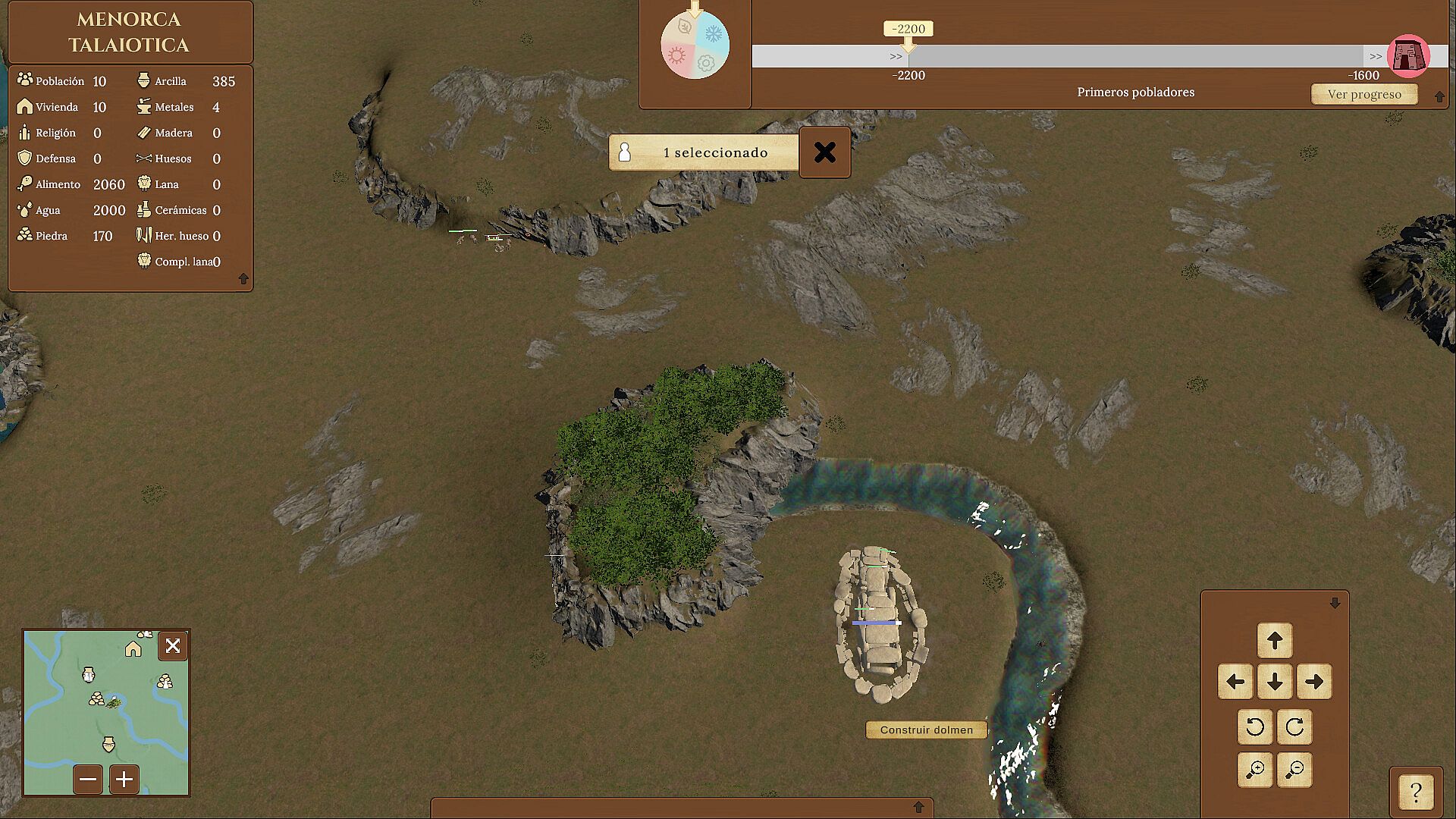 Menorca Talaiotica is a strategy game where you'll face the same challenges as the first inhabitants of the island of Menorca. You'll have to explore the island, gather natural resources, water, shelter, and food, and progress in research and construction, just as these early inhabitants did.