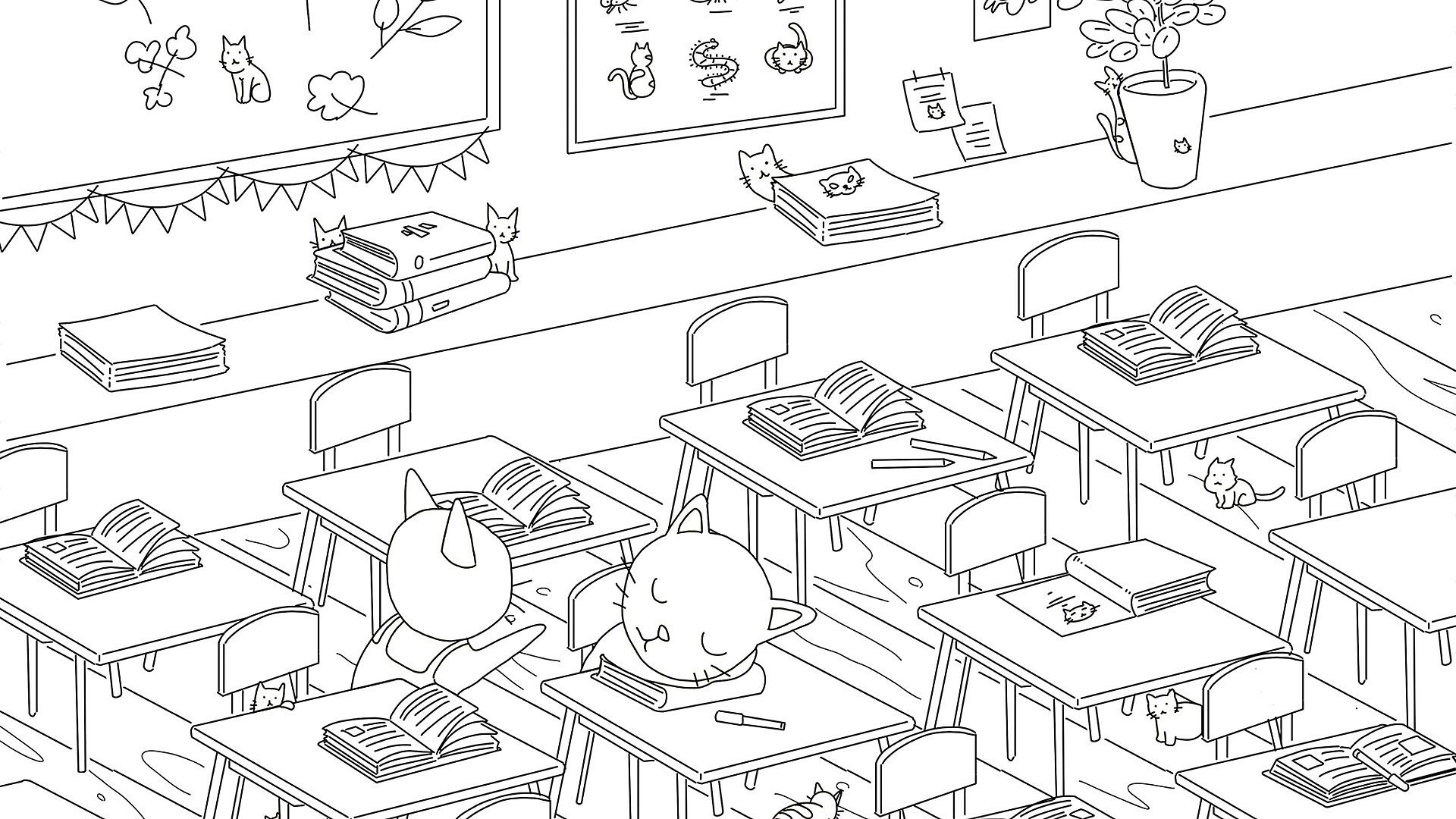 Cute cats hidden in a completely hand-painted black and white world, can you find them?