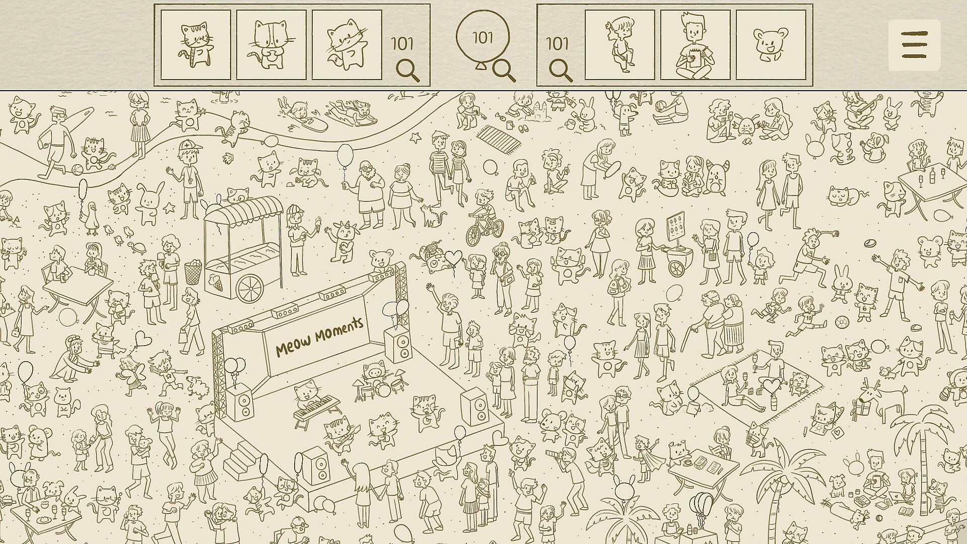 • Cats and Friends: Search for charming characters amidst the festive scene, where you find stories in every frame.