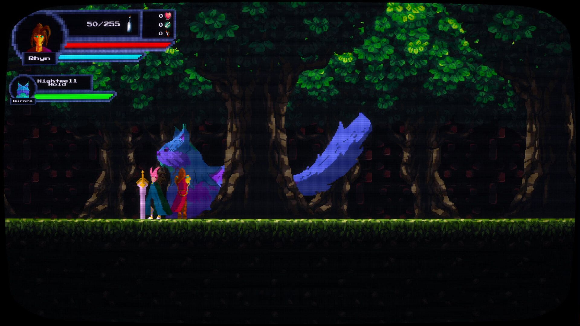 'Meowstery of a Growing Aurora' is a 2D side-scrolling adventure set within an exciting, but familiar setting. Travel through the world of the VR-MMORPG Shenanghia and help Rhyn find a way to shrink her pet cat, Aurora!
