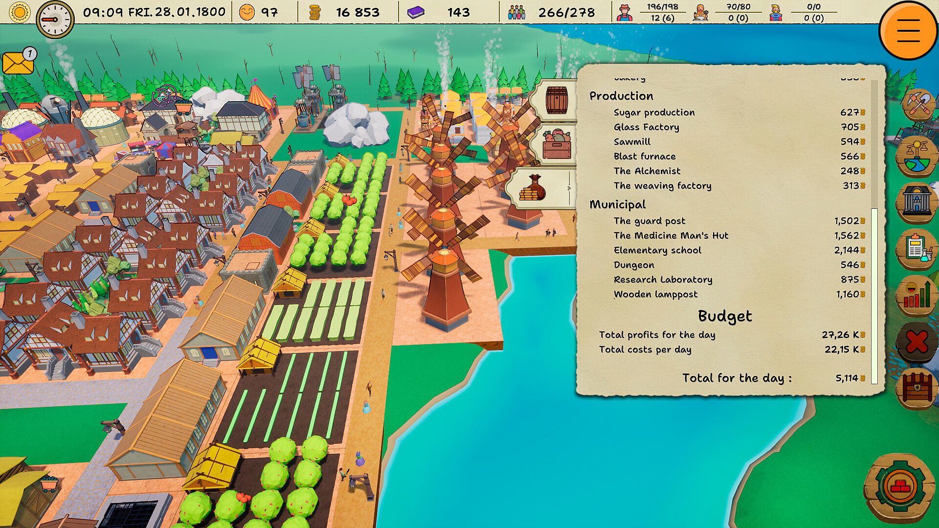 You'll manage the economy, develop trade, optimize citizens' salaries, research new technologies, and improve various aspects of city life. As the city grows and its population increases, their needs will increase. Will you be up to the challenges this game presents? Test your management and strategic skills in creating the perfect medieval settlement!