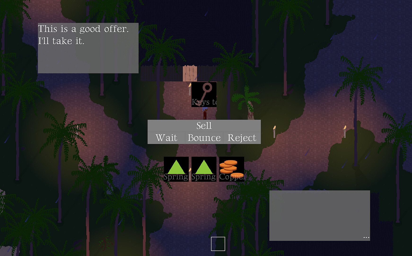 No item shop game is complete without haggling! In Mercator you can ask for better deals at any time in a negotiation, and even remove/add items in a back-and-forth, iterative process.