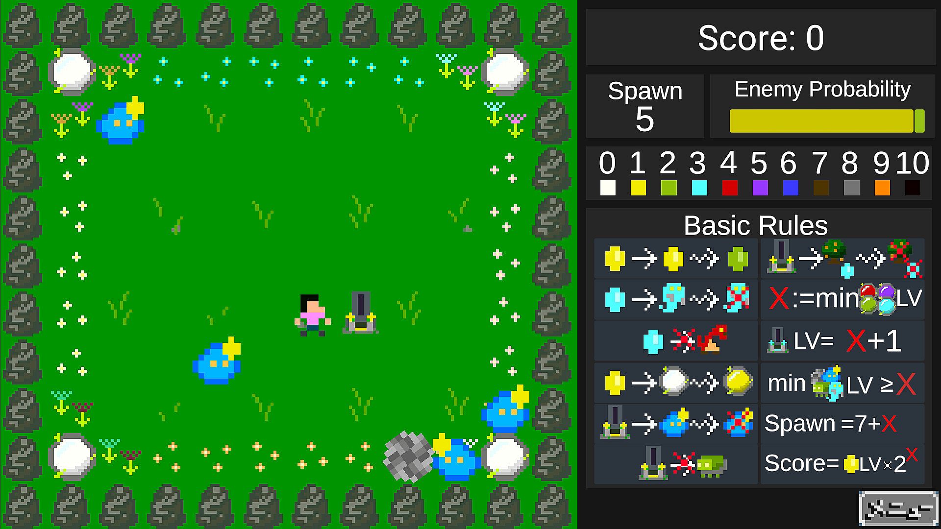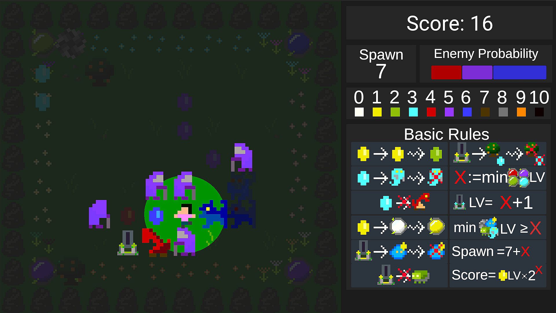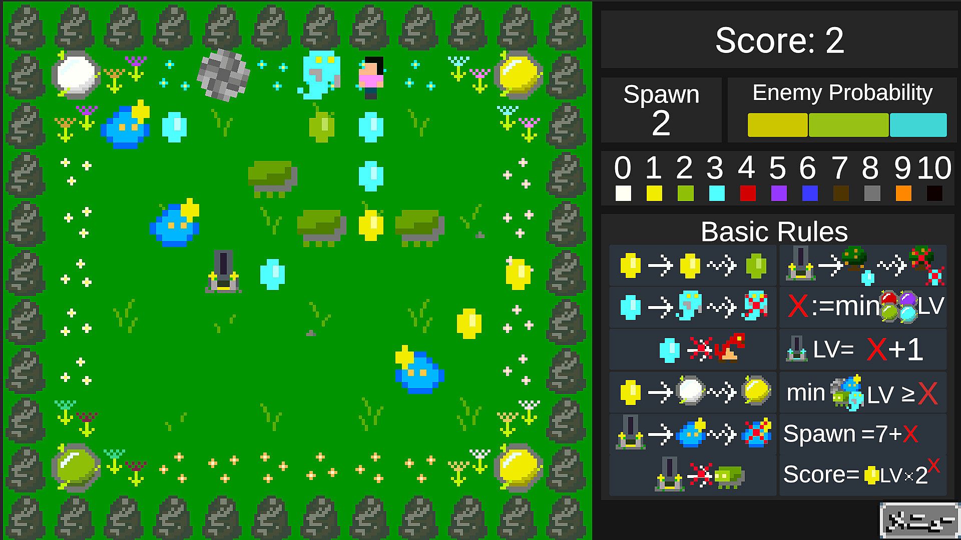 In this game, you defeat enemies emerging from dimensional rifts using coins and gravestones, merge dropped coins to strengthen them, or offer them to altars to create barriers and empower gravestones — all in pursuit of higher scores by defeating even stronger enemies.