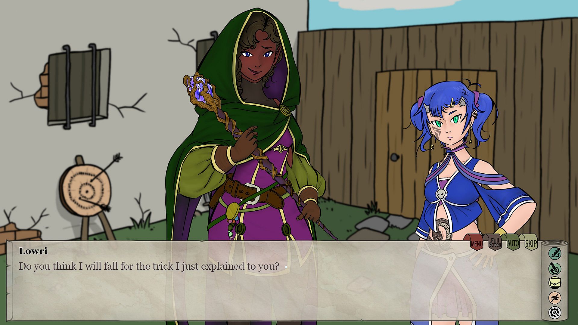 Lowri: A young witch who lacks tact. In her quest for power, she decides to summon you into the world. Despite the mysterious shine in her eyes, she welcomes you with a friendly smile and treats you just as she would treat an equal. She is open and sociable, but you can sense something deeper within. Will you help Lowri face her past, perhaps even fall in love?