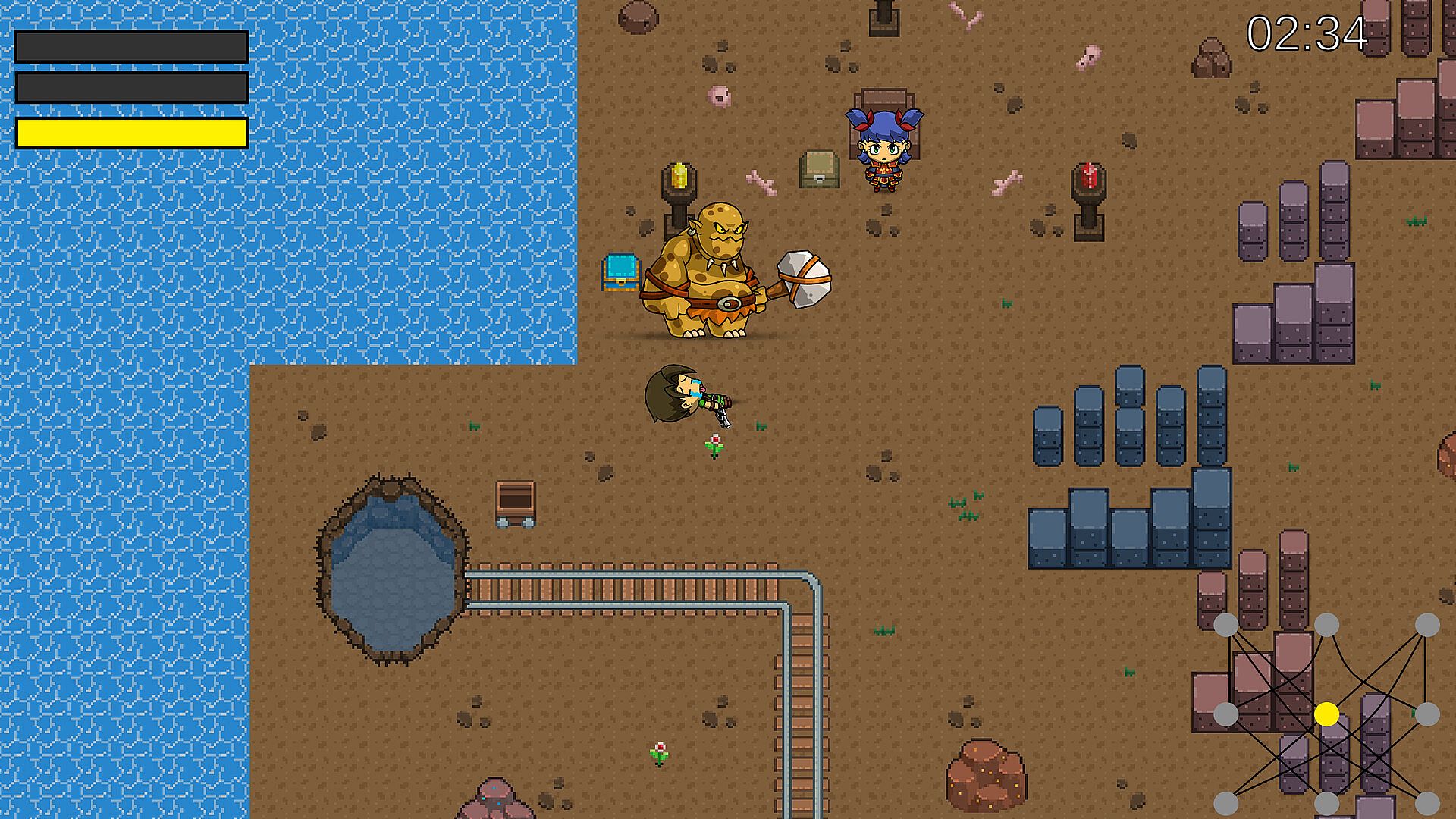 Merio Gear is a competitive and asymmetrical 2D action game for up to three players. Each match pits Merio, Mirio, and Michi against each other in a duel of wit, strategy, and reflexes: while one hunts, another chases, and the third tries to escape — all competing to achieve their goals before the others. With a humorous tone and matches full of controlled chaos, Merio Gear blends action, cunning, and creativity in every round.