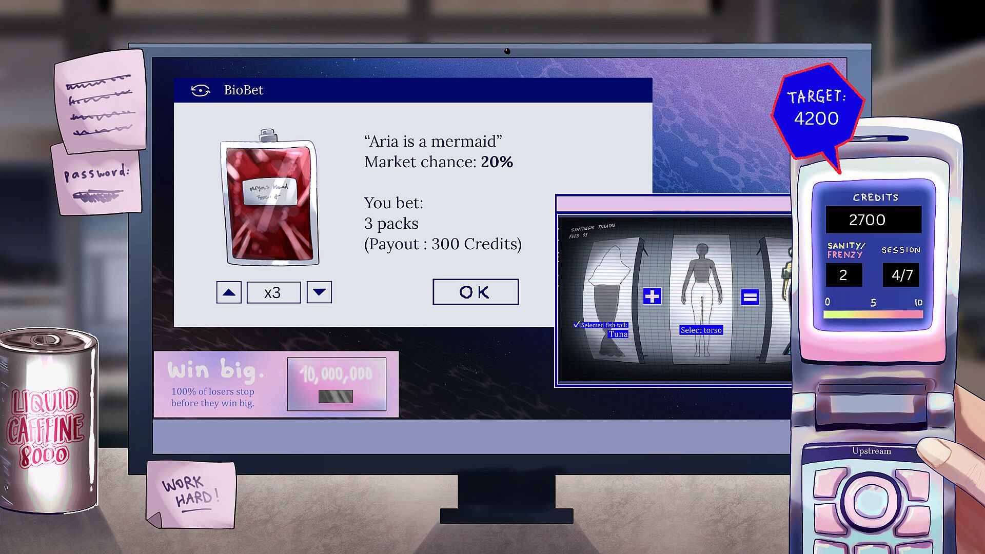 Gamble your blood, upgrade your luck with insider deals, and maybe sew fish tails onto human torsos. Are mermaids more like fish, people, or monsters? Will you save them, or sell them to pay off your debts? MERMAIDS ARE SEAFOOD is a psychological horror game with a branching story. Your choices matter.