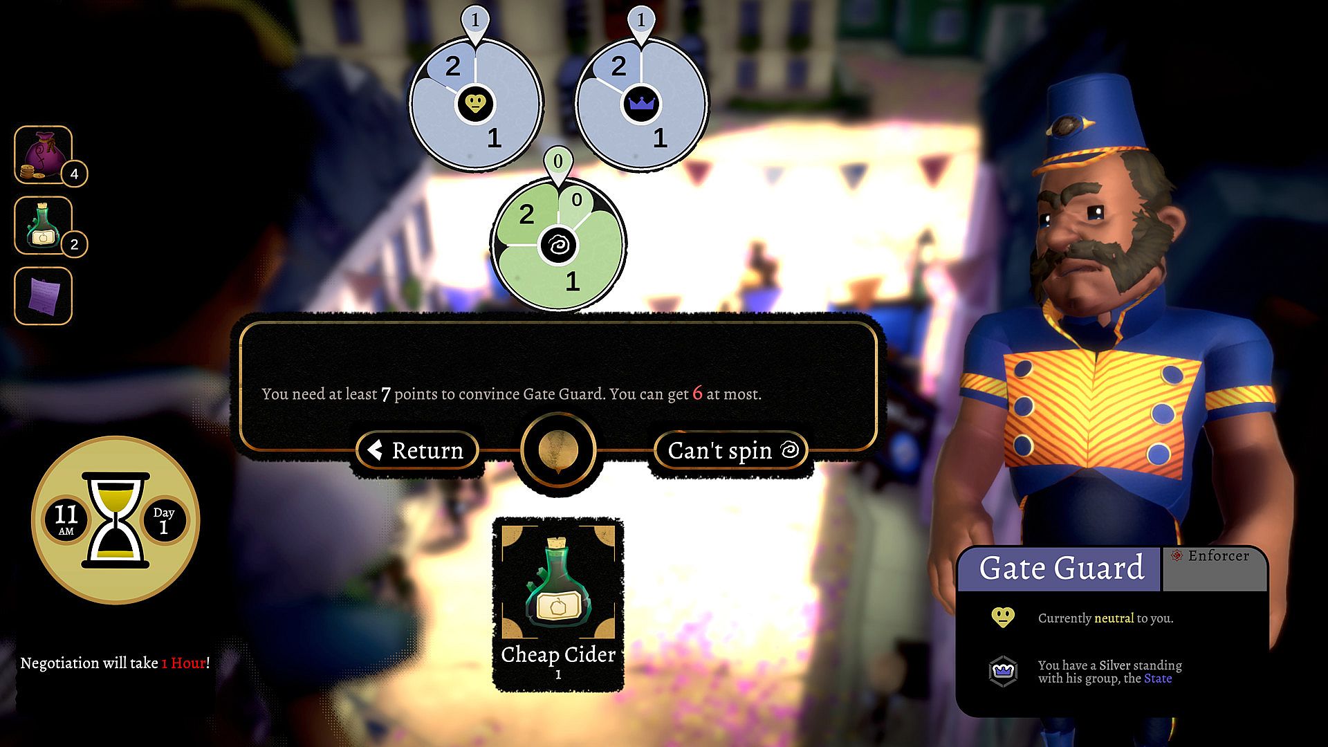 Build influence and win the favor of the people through your charm, helpfulness and skillful social interaction- or resort to blackmail and threats of violence.