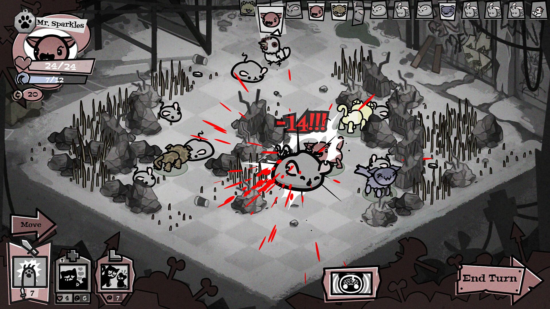 Welcome to Boon County, where each day you’ll assemble a team from your ever-growing house and outfit your cats with class-specific collars (Fighter, Tank, Mage, and many more). Send your mutant feline squad clawing through adventures of turn-based battles that demand careful positioning, wild power combos, and environmental shenanigans.