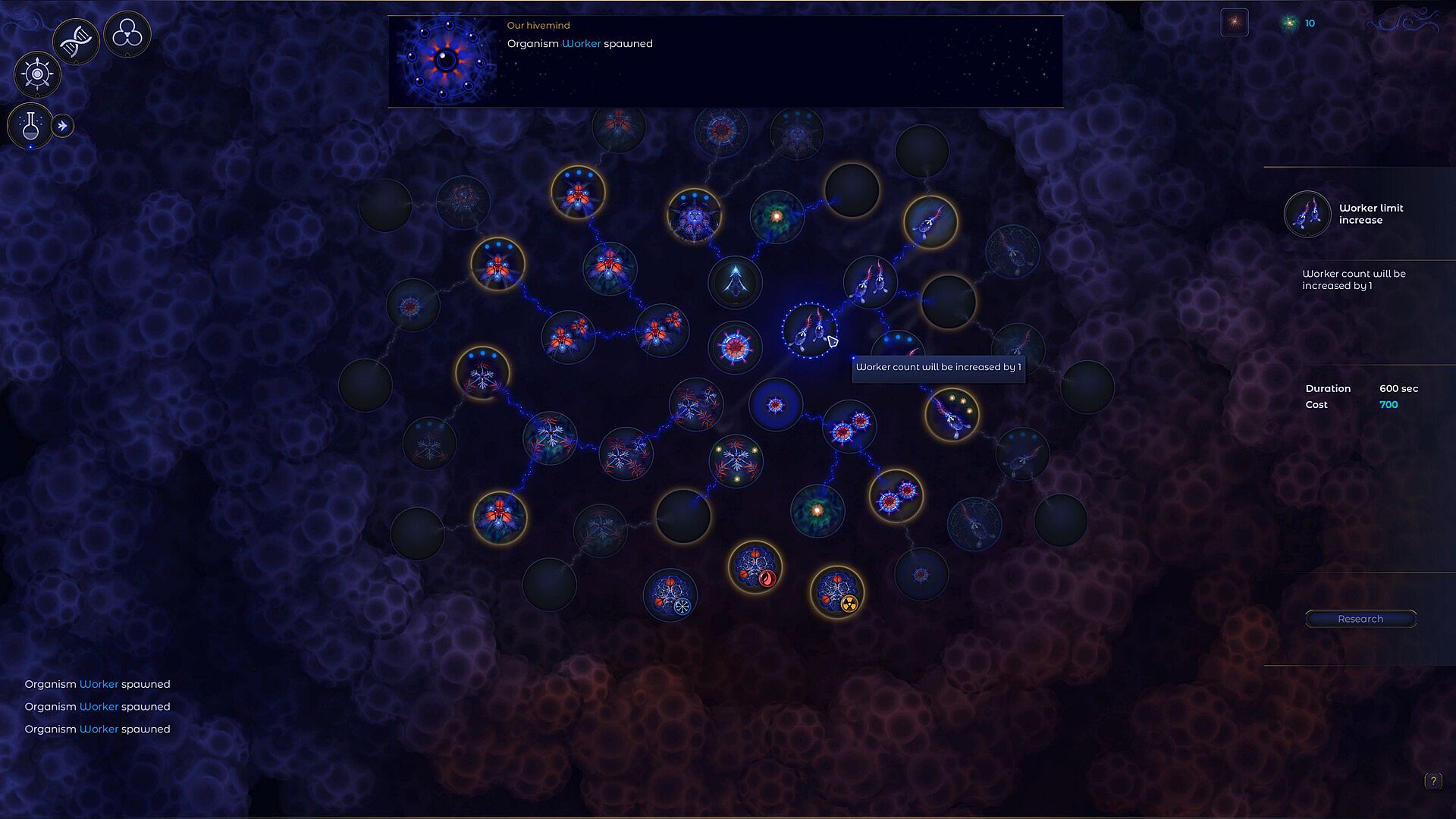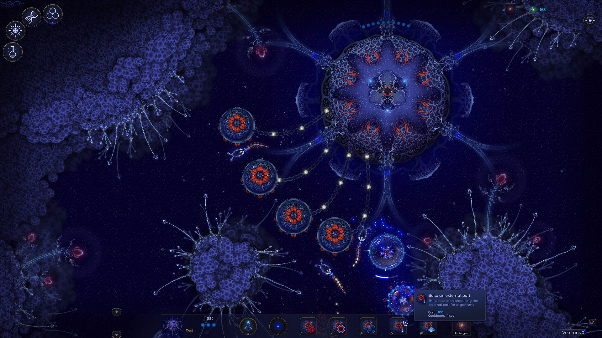 A relaxing strategy game featuring unconventional gameplay. Your objectives include development, evolution, border expansion and protection of your hive.