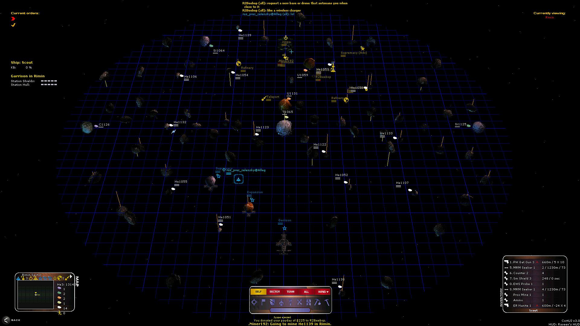 Economy is key in Allegiance so both hunting enemy miners and defending your own is essential. Base placement drives miner offense and miner defense. Ensuring your own bases build in a timely manner is vital to your success.