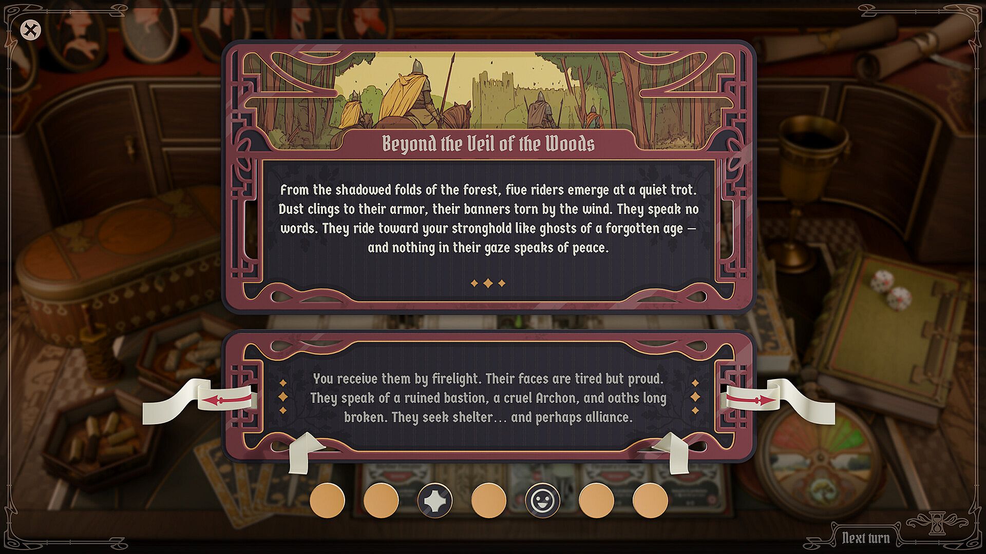 Throughout your reign, six mysterious figures will cross your path. Some will ask for favors, others will plant seeds of doubt, a few may try to guide… or manipulate you. It’s up to you to decide whom to trust and whom to reject. But every choice comes at a cost.