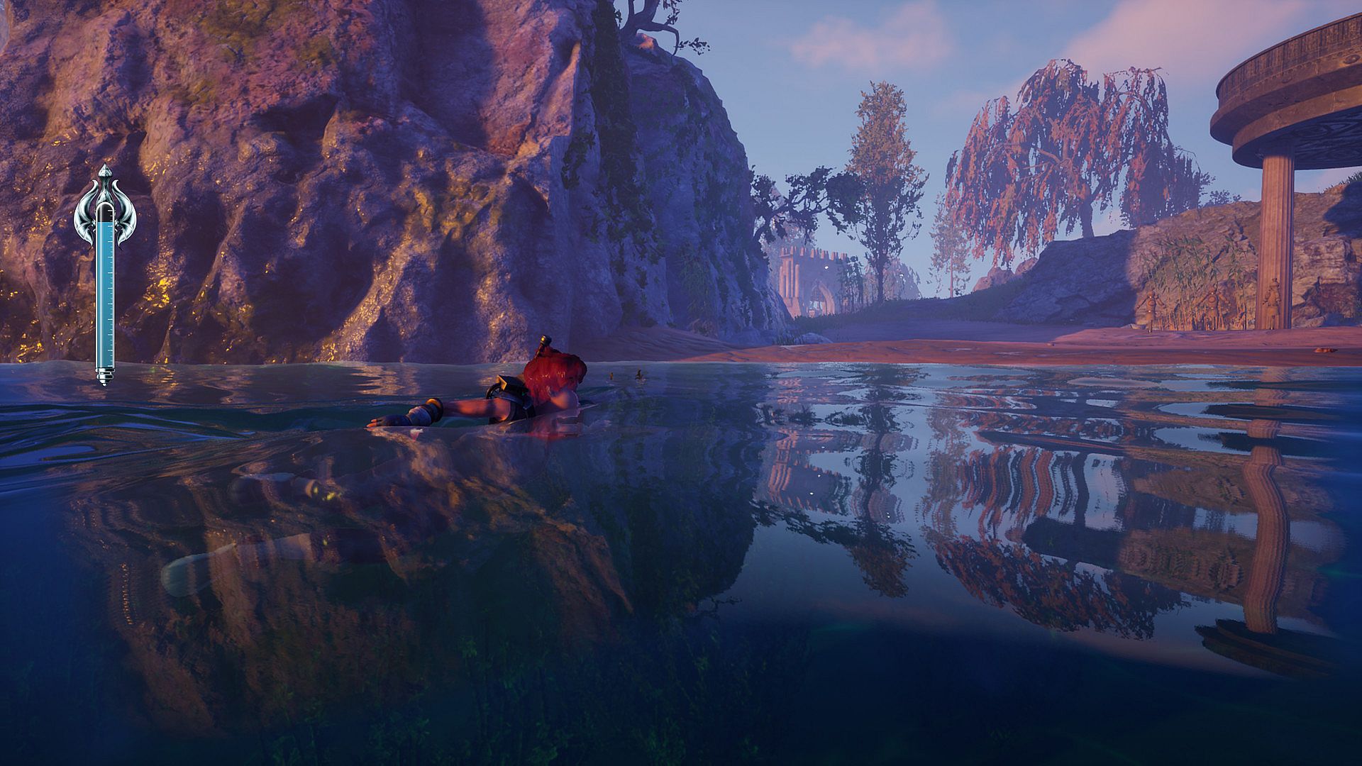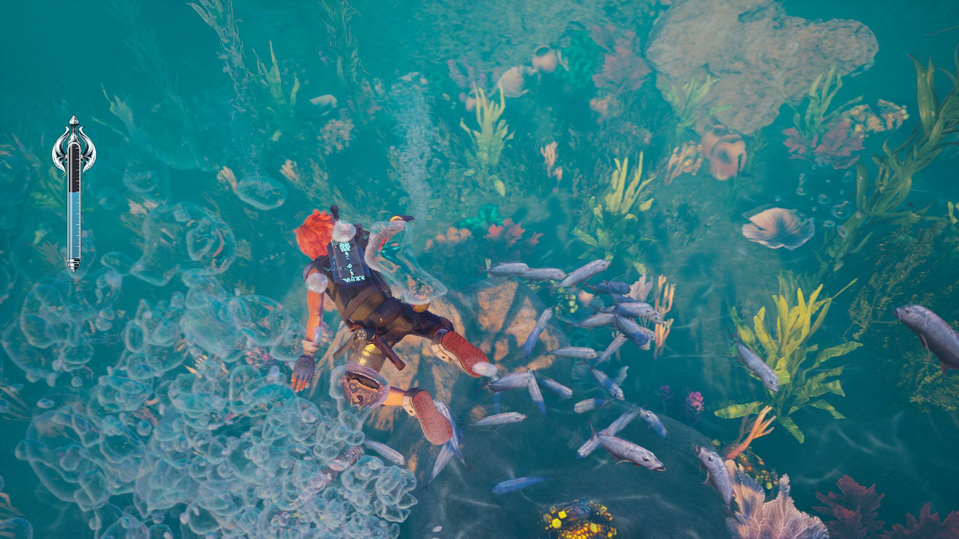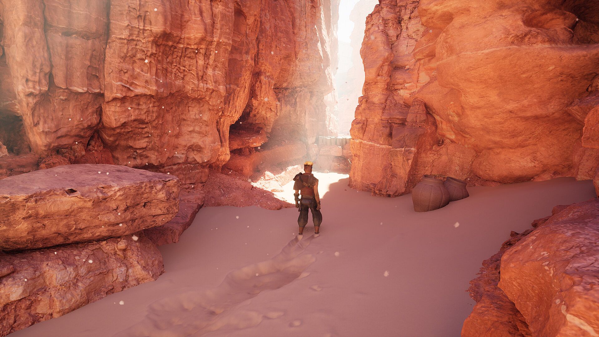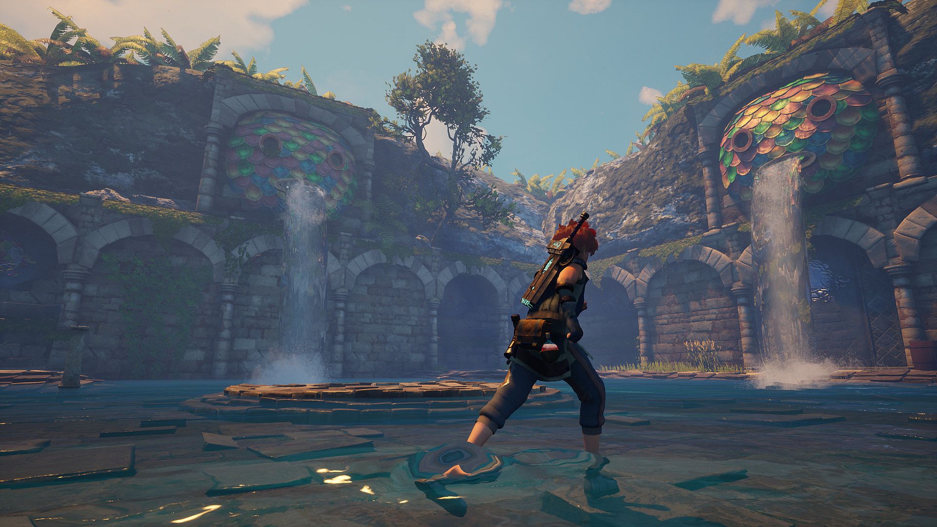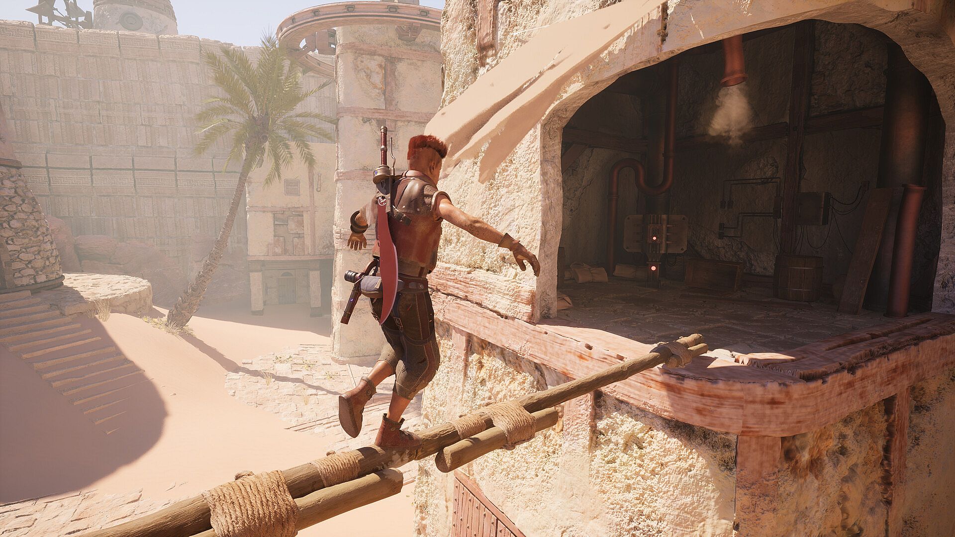 The player will take control of Paran, a young scavenger, who's able to explore the game world in its entirety, climbing up buildings and towers in the main city, swimming on the surface and underwater to reach wild islands and grottoes, gliding and dashing with a special sword, sneaking into tight spaces, and breaking through walls with explosive barrels.