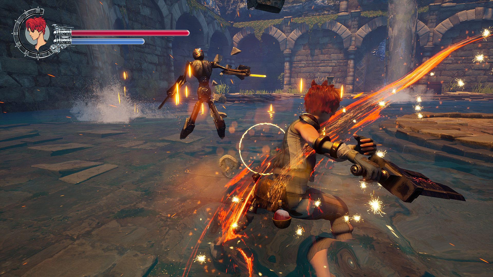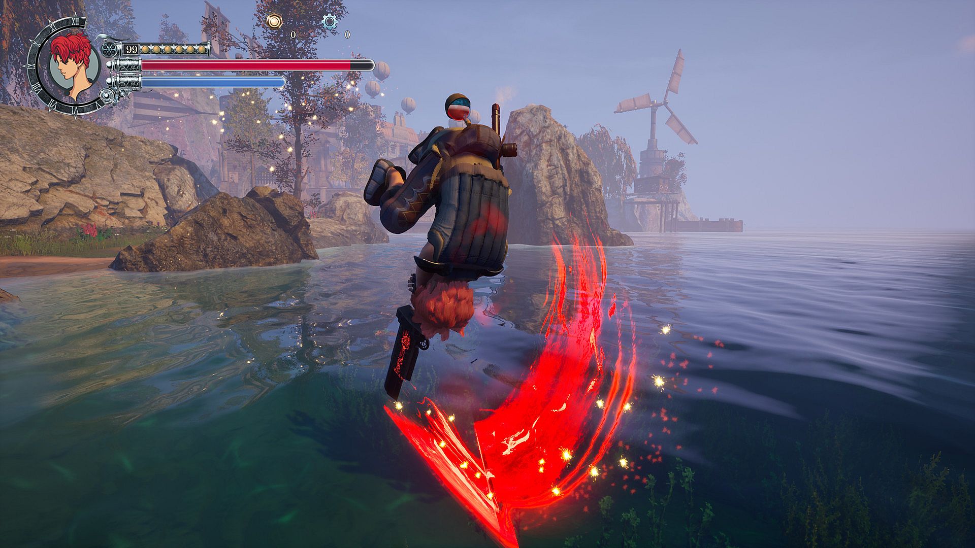 In exploring the world of Numia, and defeating the enemies he finds there, Paran earns Cogs and collects ammunition, potions, and experience points. To collect these XPs, he must use the special capabilities of the sword. Like in many classic RPGs, experience points are needed to level up and improve Paran’s stats.