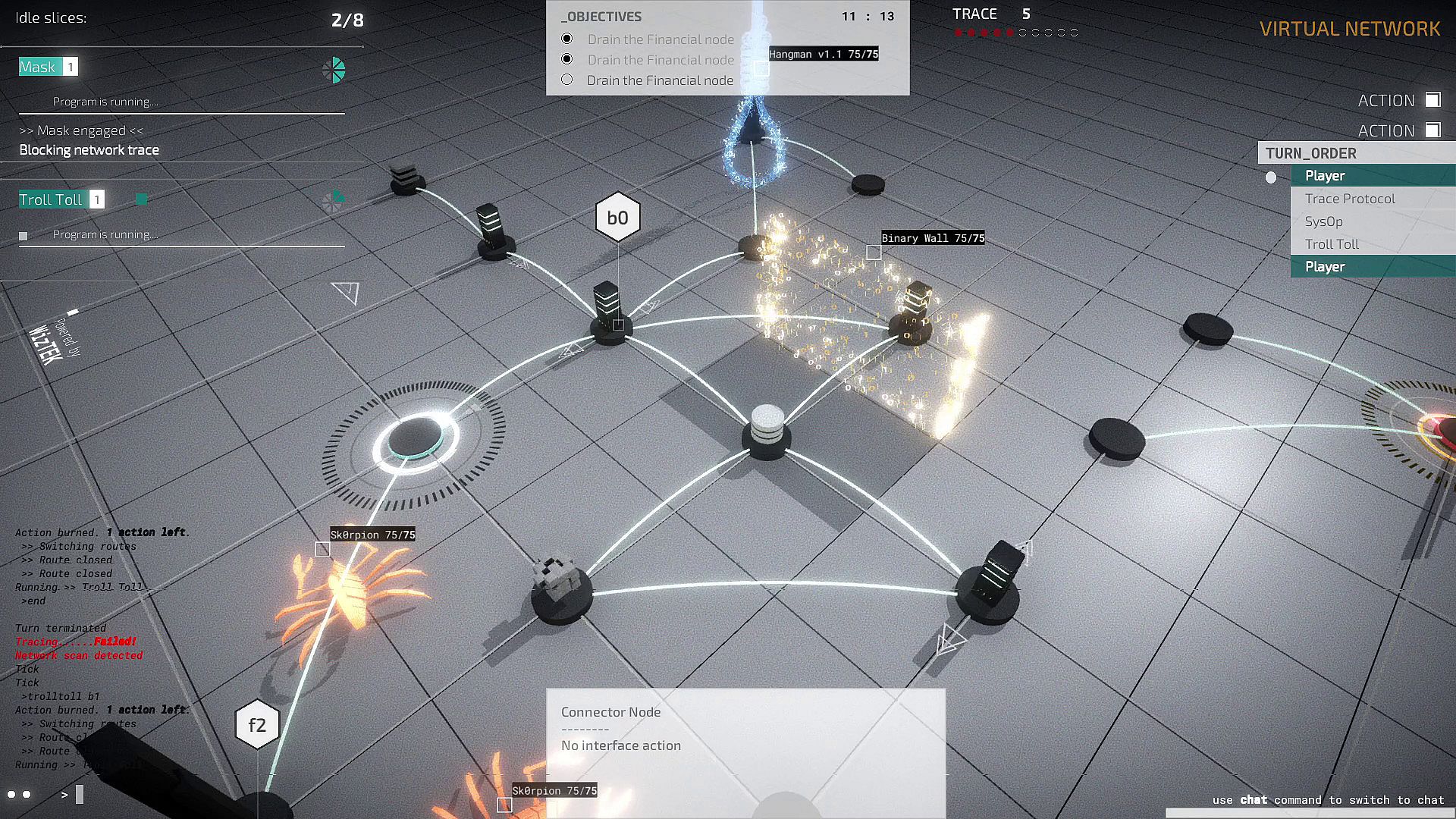 Midnight Protocol’s design focuses on immersing you in a world of digital warfare without complicated hacking mechanics. Your keyboard is your weapon, type commands to eliminate or evade security programs, letting your keystrokes become part of the soundtrack.