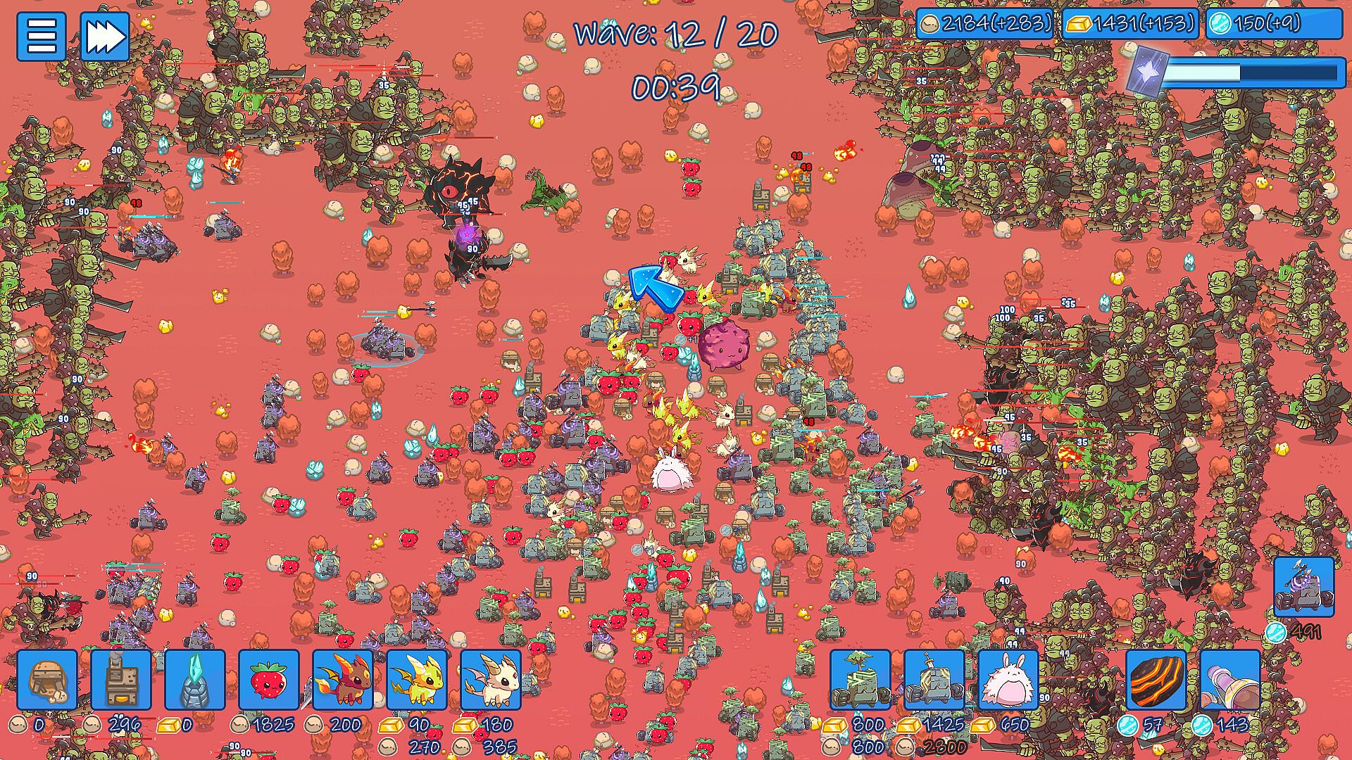Strengthen your defenses: use collected resources to build towers to fight off the enemies.