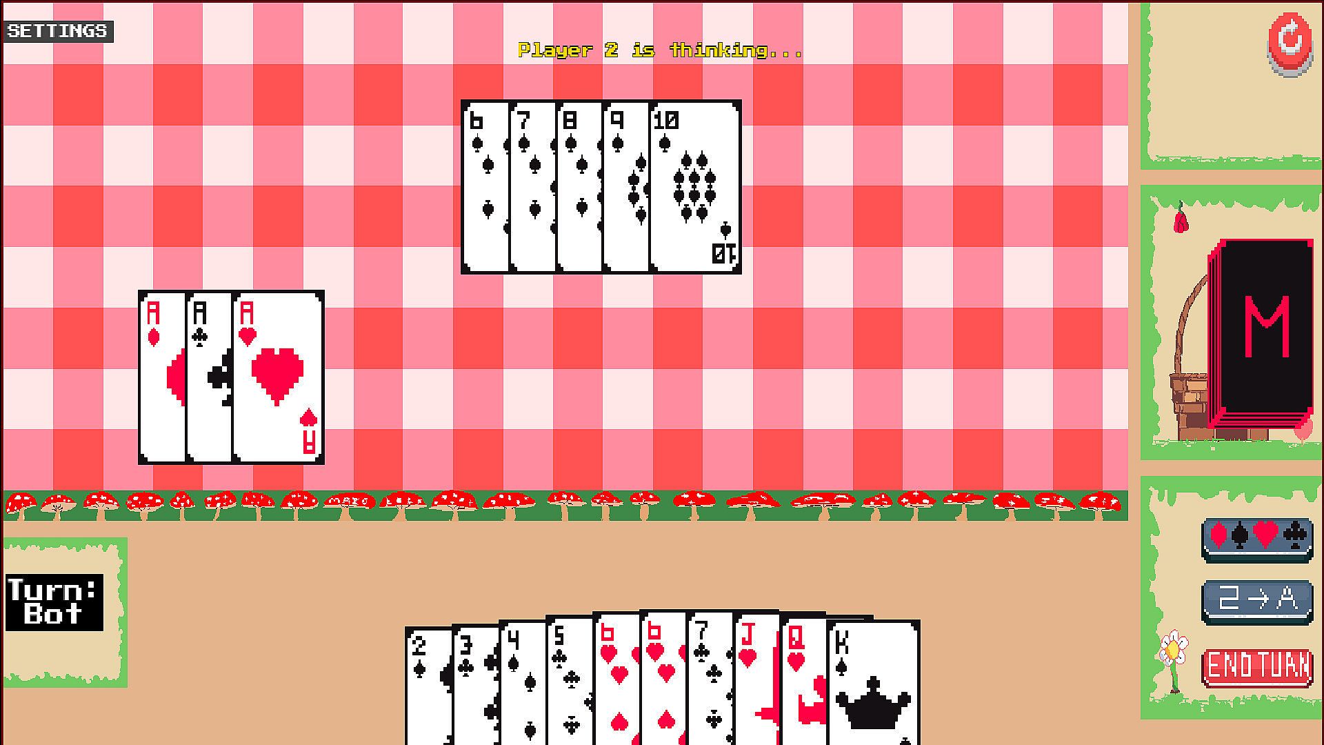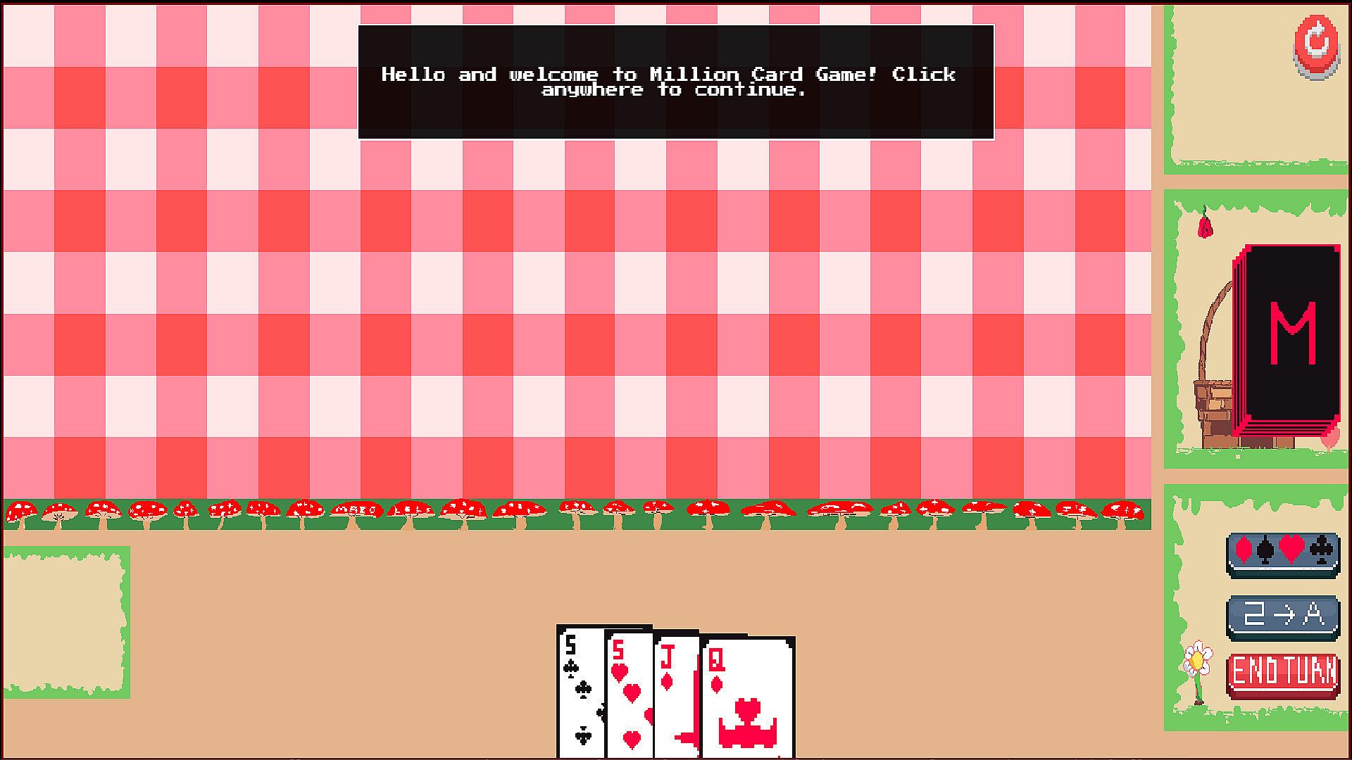Million Card Game is a card game played between 1-5 players with the main objective being to be the first to get rid of all the cards in your hand! Place cards in the table either using same rank sandwiches of cards or runs of the same suit. Players are able to temporarily take cards from already placed groups on the table in order to make group in their hand allowing for dynamic and fun gameplay. The game features a tutorial. Single player bot mode and local multiplayer up to 5 players!