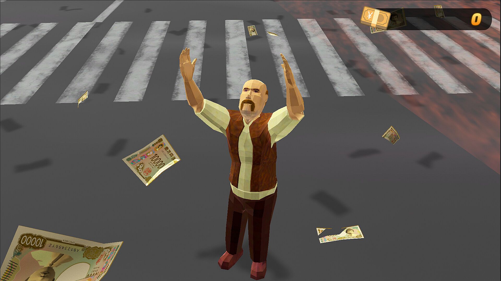 You play as a lucky middle-aged man, scrambling to gather as much cash as you can.