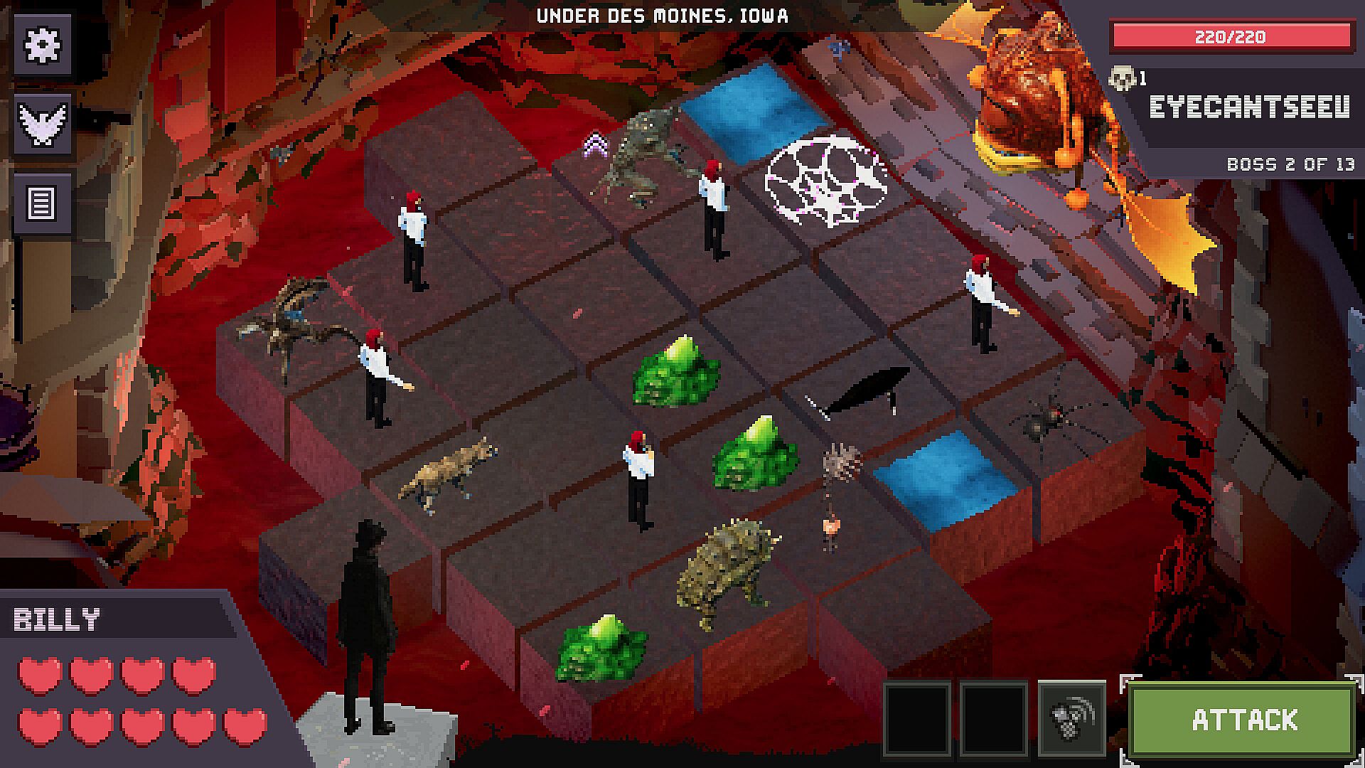Draft roguelike autobattling deckbuilders where you assemble wild armies from civilians and soldiers to bizarre recruits like succubi, tax accountants, and whales. Cross the United States to battle 50 giant bosses across 50 cities, including Montreal, by discovering synergies among troops such as turning citizens into vampires or mutants via tactical nukes. Fights unfold in snappy turn-based combat as 25 units deploy randomly on the battlefield, relying on your militia's composition for victory. Strategy fans who crave deep synergies and unpredictable autobattles will find endless replayability in recruiting from dozens of quirky fighters, from giant rats and weredragons to laser frogs and replicating spiders.